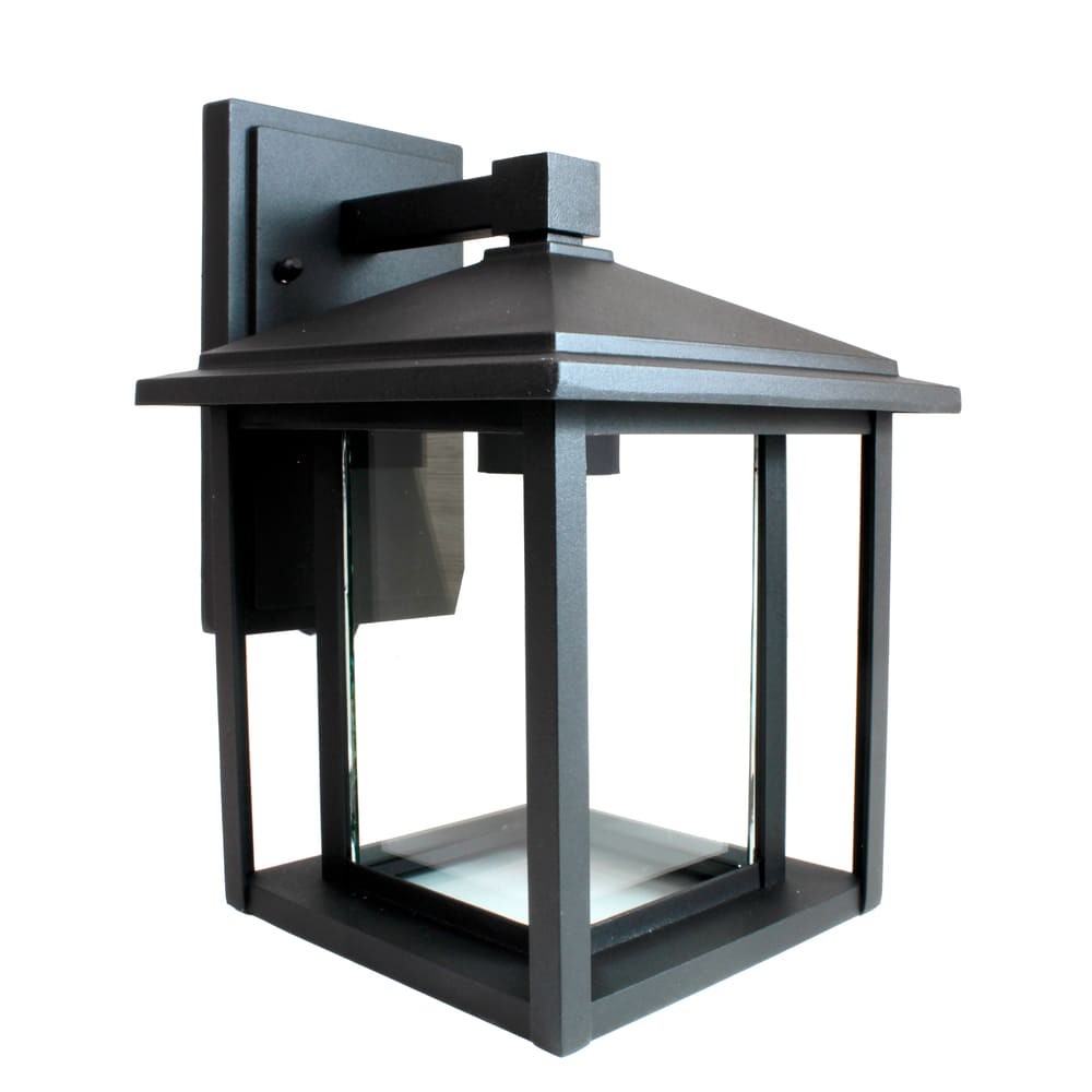 Aplique de exterior para jardines y terrazas con IP23. Este farol para bombillas E27 cuenta con una tulipa de cristal transparente para cubrir la bombilla. Estructura de aluminio lacado en negro mate. Puedes combinar el aplique con el farol colgante Ronda.