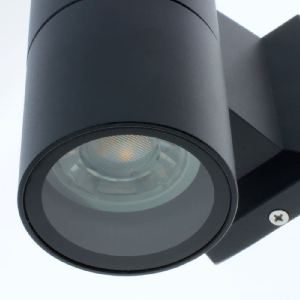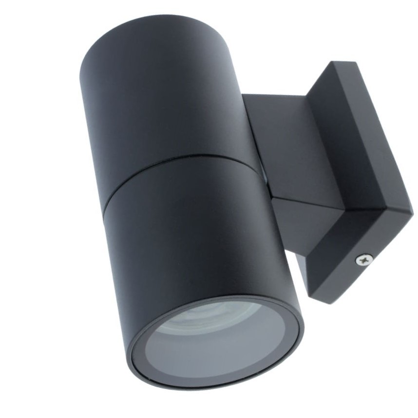 Aplique de pared con una luz apto para tanto para paredes de interior como de exterior de terrazas, jardines y porches. Resistente al agua con IP44. El aplique tiene forma cilíndrica, muy fácil de instalar y cómodo para reemplazar la bombilla. Acabado lacado en negro texturizado. Puedes encontrar el modelo Relax con una o dos luces. Para bombillas GU10. Bombilla no incluida.