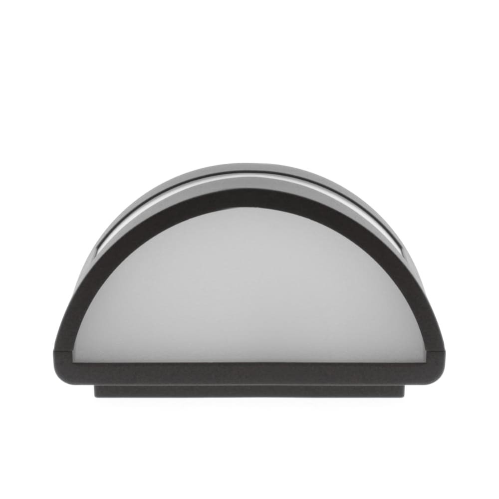 Aplique apto para exterior con IP44. Estructura de aluminio lacado en gris antracita, con difusor blanco opaco y translucido. Para bombilla E27, no incluida.