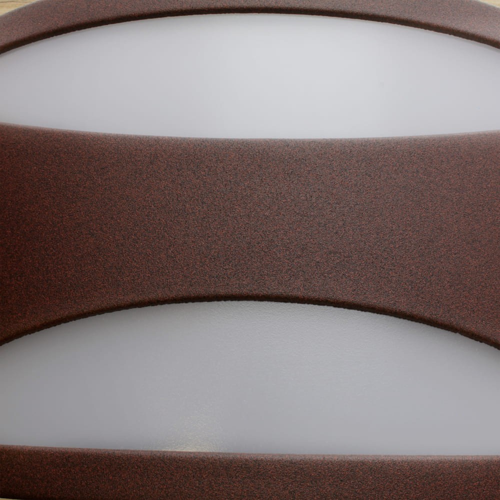 Aplique apto para exterior con IP44. Estructura de aluminio lacado en marrón óxido Con difusor blanco opaco y translucido. Para bombilla E27, no incluida.