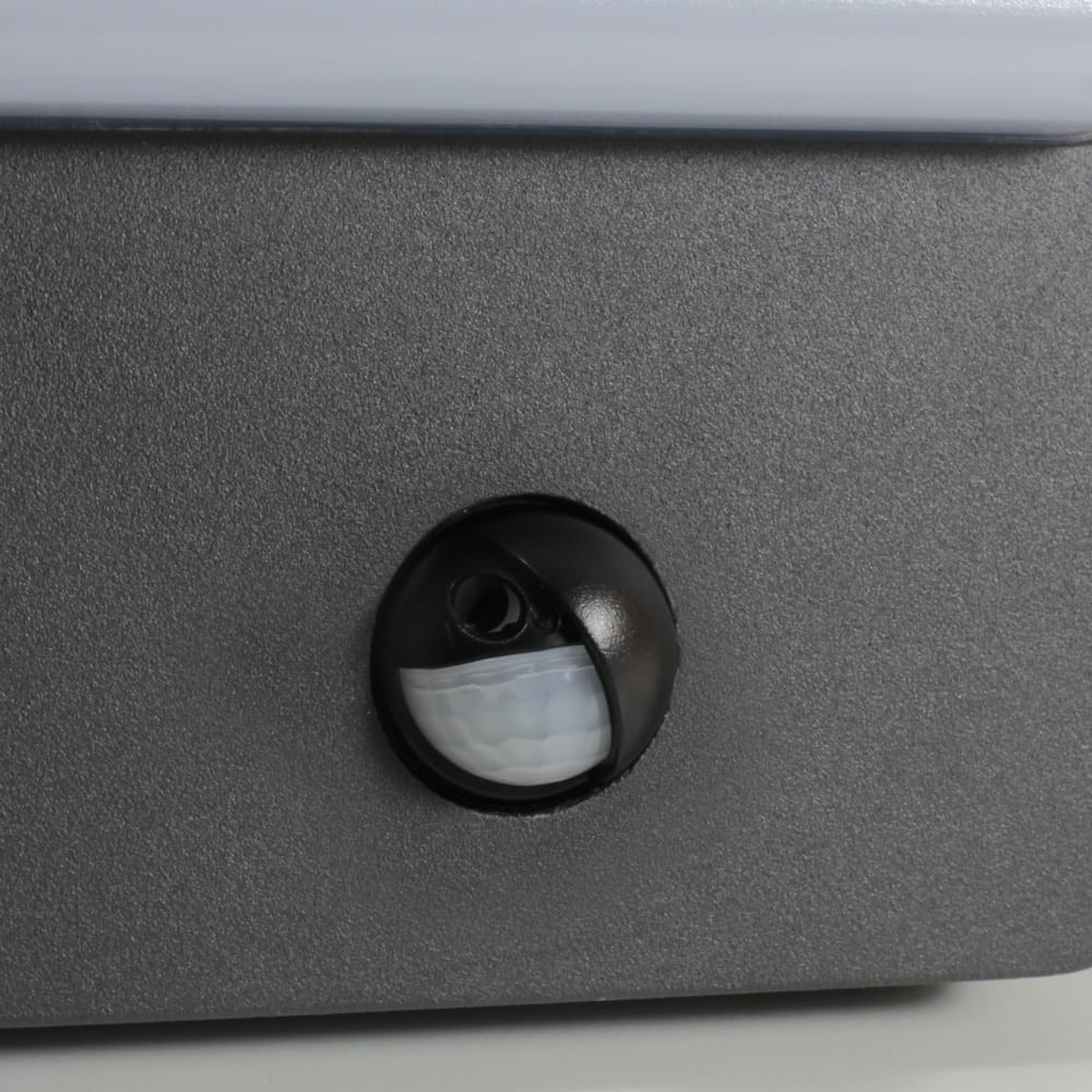 Aplique de pared con sensor crepuscular y sensor de movimiento. Su sensor de movimiento tiene un ángulo de detección de 120°, detecta a una distancia de 8-12 colócalo a una altura mínima de 2,5 metros. Puedes controlar el tiempo de encendido de 8 hasta 300 segundos.