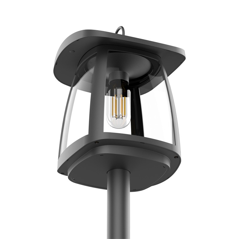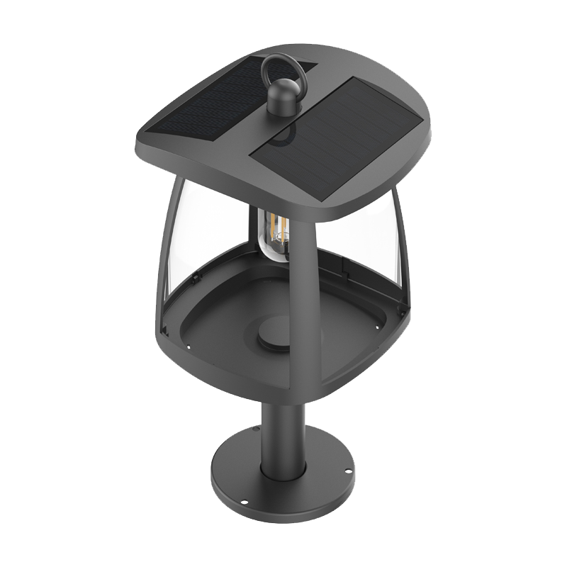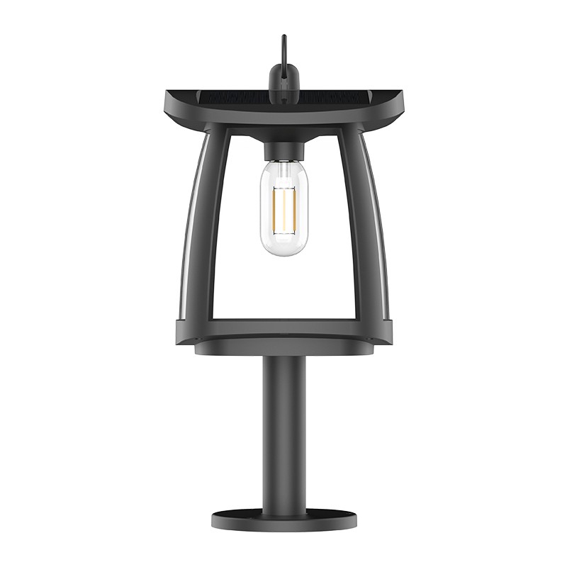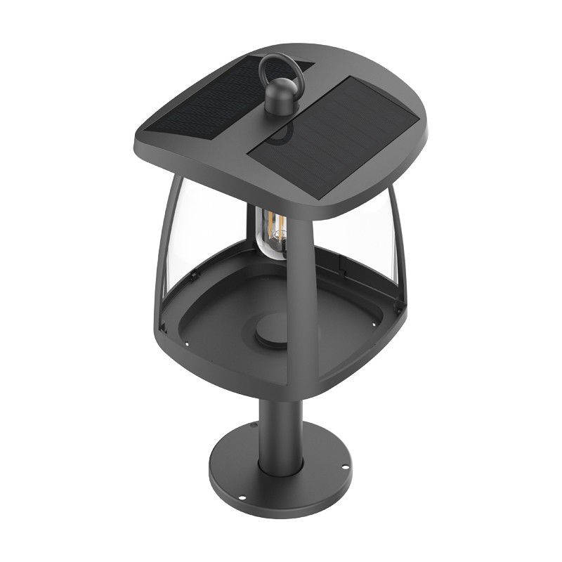 Baliza solar LED Zeffa. Baliza con panel solar de carga en la parte superior diseñada para iluminación exterior. Estructura de plástico de color negro y difusores transparentes. Mediante un pequeño interruptor situado en la parte frontal puedes seleccionar entre 4 intensidades de luz (25-50-75-100%). Panel solar en la parte superior para cargar la batería y utilizar sin consumo energético. Grado IP54 frente a posibles salpicaduras de agua provocadas en el entorno.