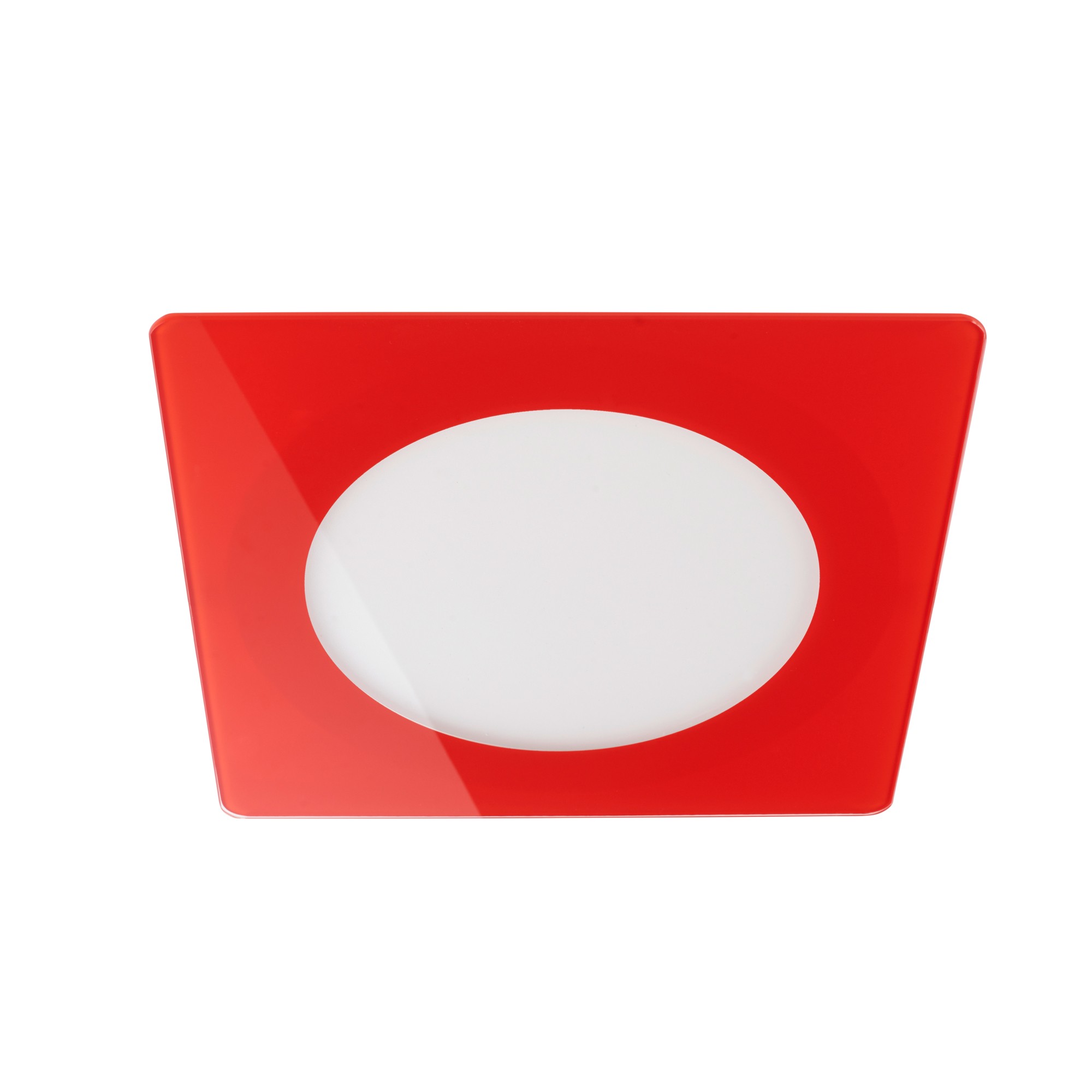 Downlight led extraplano cuadrado con cristal decorativo de color rojo, perfecto para techos bajos, ya que solo tiene una profundidad de 2cm. Iluminación led integrada de 6W con luz neutra en 4000K. Perfecto para empotrar en techos de cocinas, pasillos, baños o locales comerciales, restaurantes o tiendas.