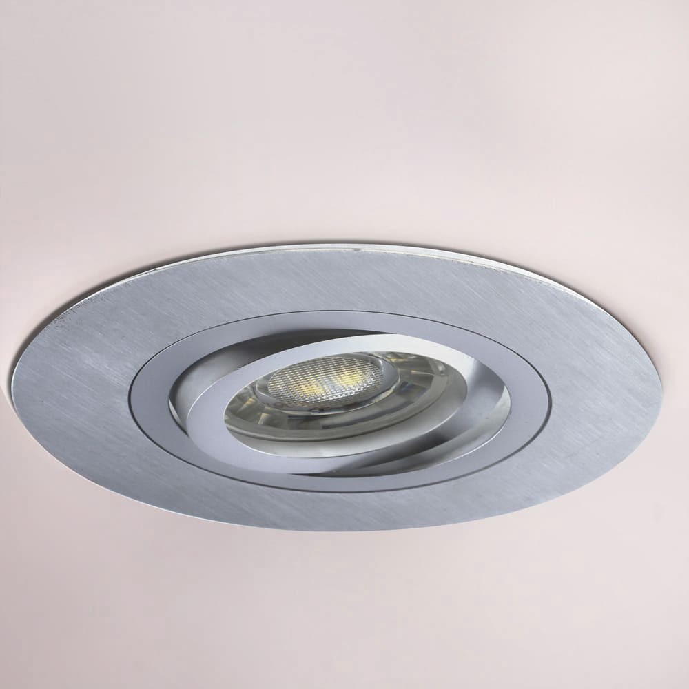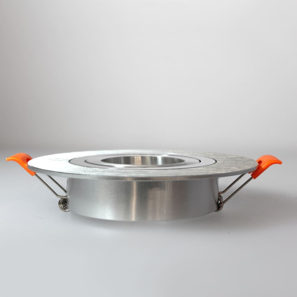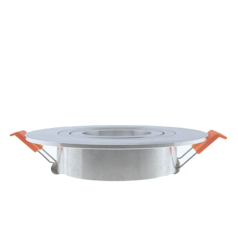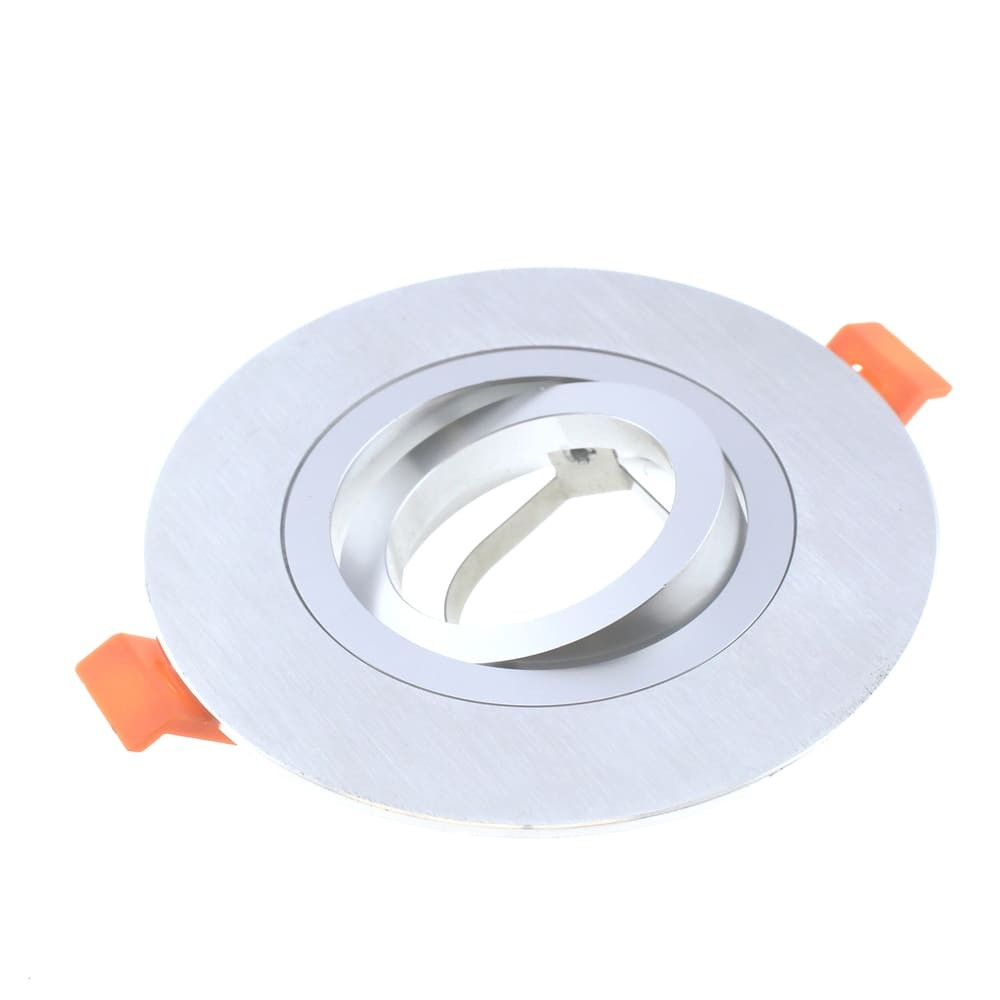 Empotrable de techo basculante acabado aluminio. El empotrable de techo Helium Plus está realizado en aluminio, con un diseño circular para una fácil integración en el techo. Incluye un portalámparas para bombilla GU10, y una vez colocada la bombilla esta puede reemplazarse fácilmente por la parte delante. El empotrable es basculante para dirigir el punto de luz. Acabado inoxidable.