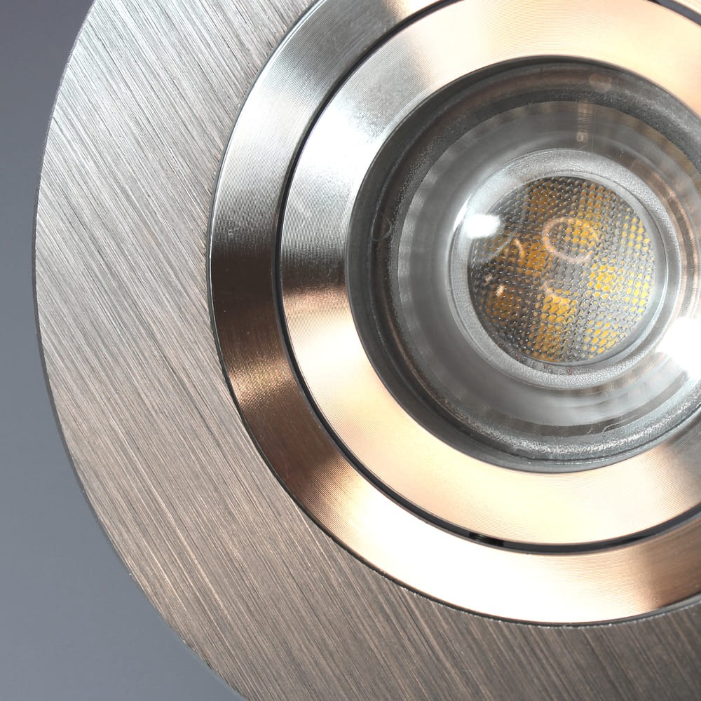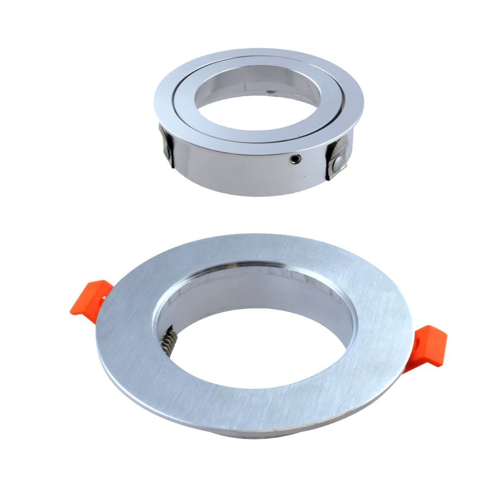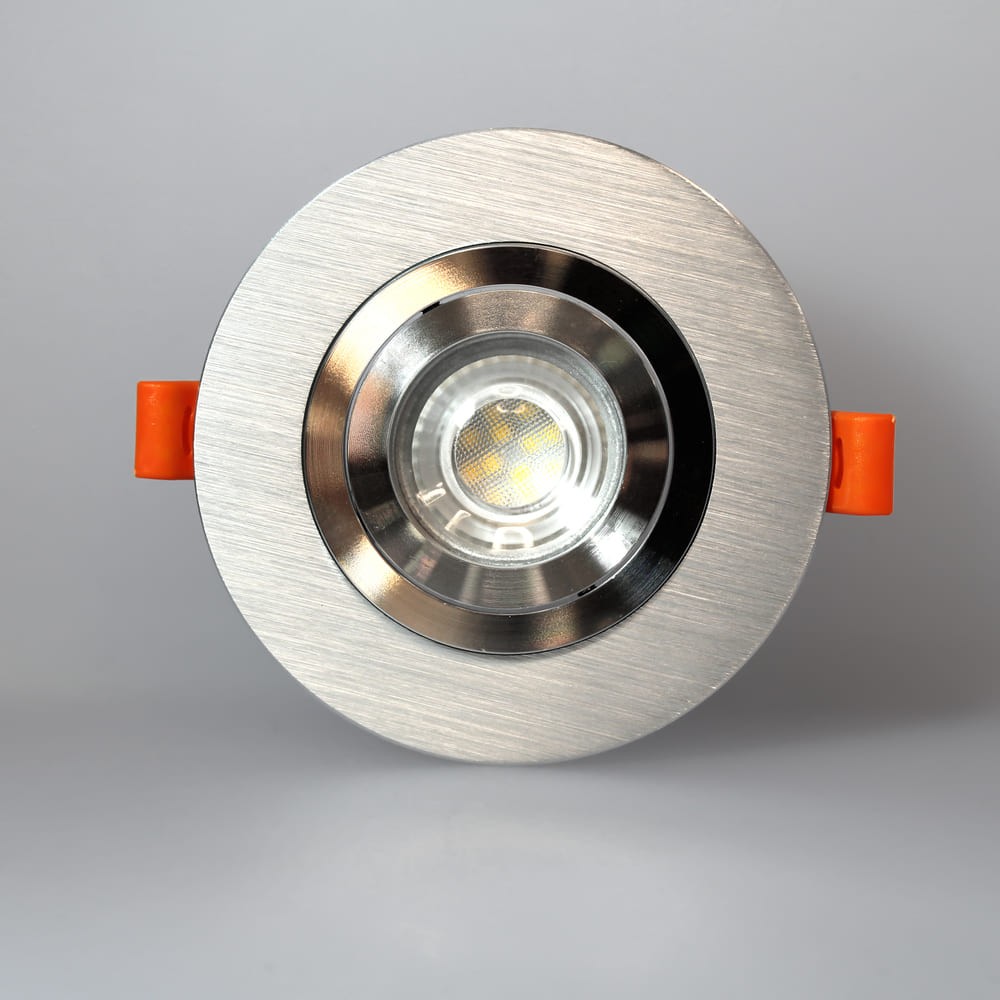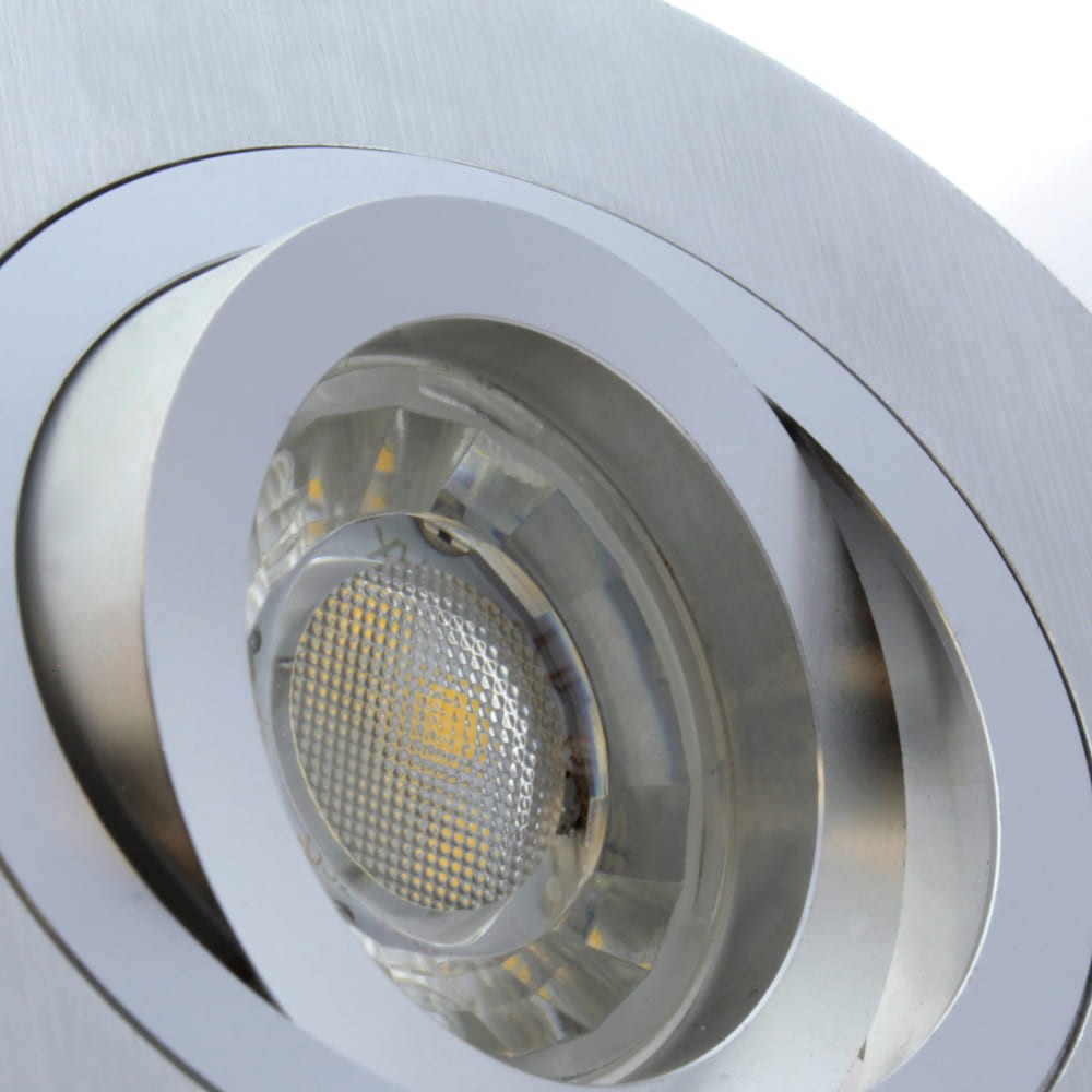 Empotrable de techo basculante acabado aluminio. El empotrable de techo Helium Plus está realizado en aluminio, con un diseño circular para una fácil integración en el techo. Incluye un portalámparas para bombilla GU10, y una vez colocada la bombilla esta puede reemplazarse fácilmente por la parte delante. El empotrable es basculante para dirigir el punto de luz. Acabado inoxidable.