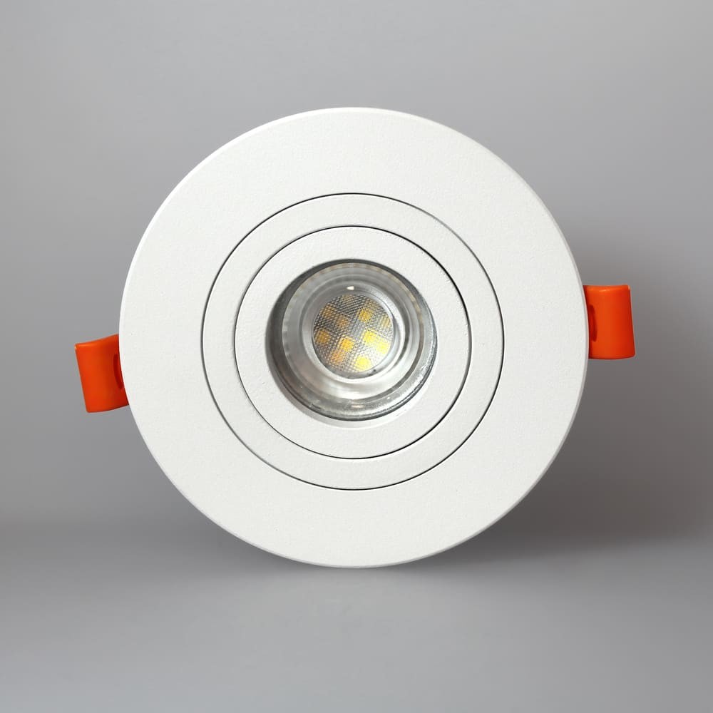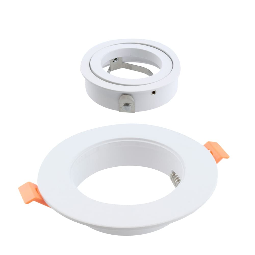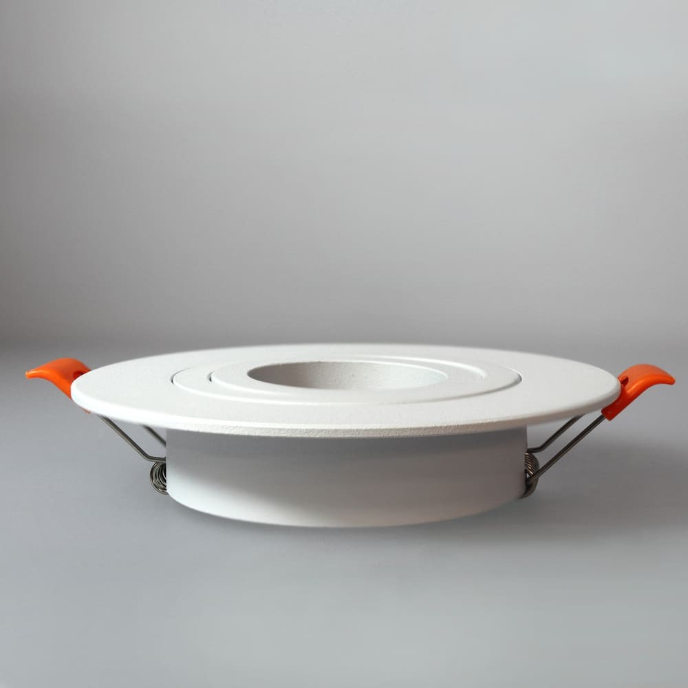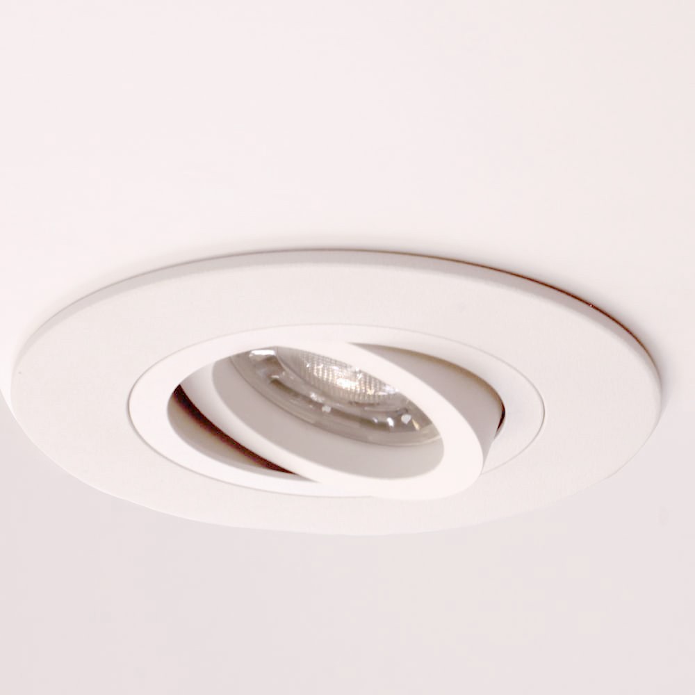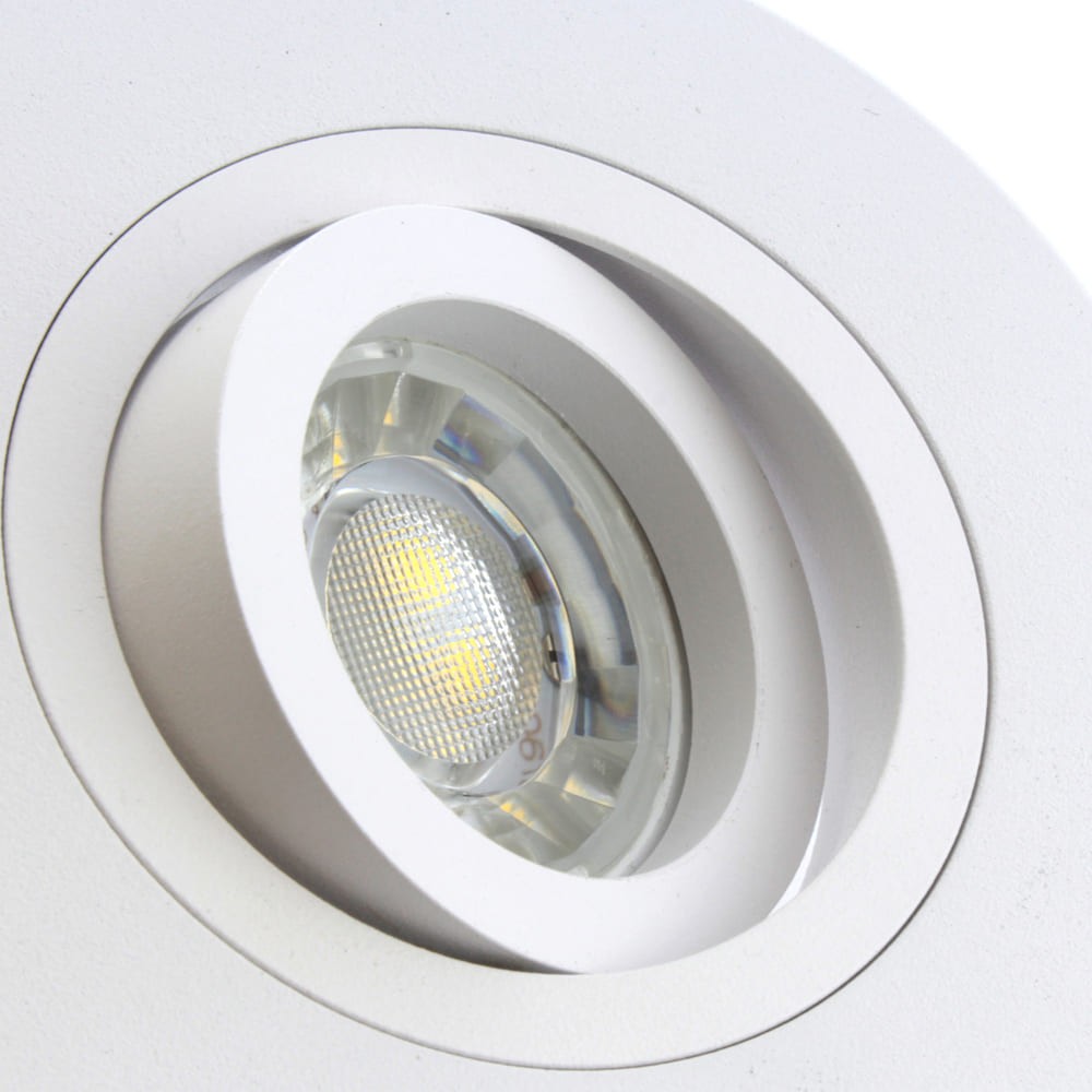 Empotrable de techo basculante acabado blanco técnico. El empotrable de techo Helium Plus está realizado en aluminio, con un diseño circular para una fácil integración en el techo. Incluye un portalámparas para bombilla GU10, y una vez colocada la bombilla esta puede reemplazarse fácilmente por la parte delante. El empotrable es basculante para dirigir el punto de luz. Acabado blanco técnico.