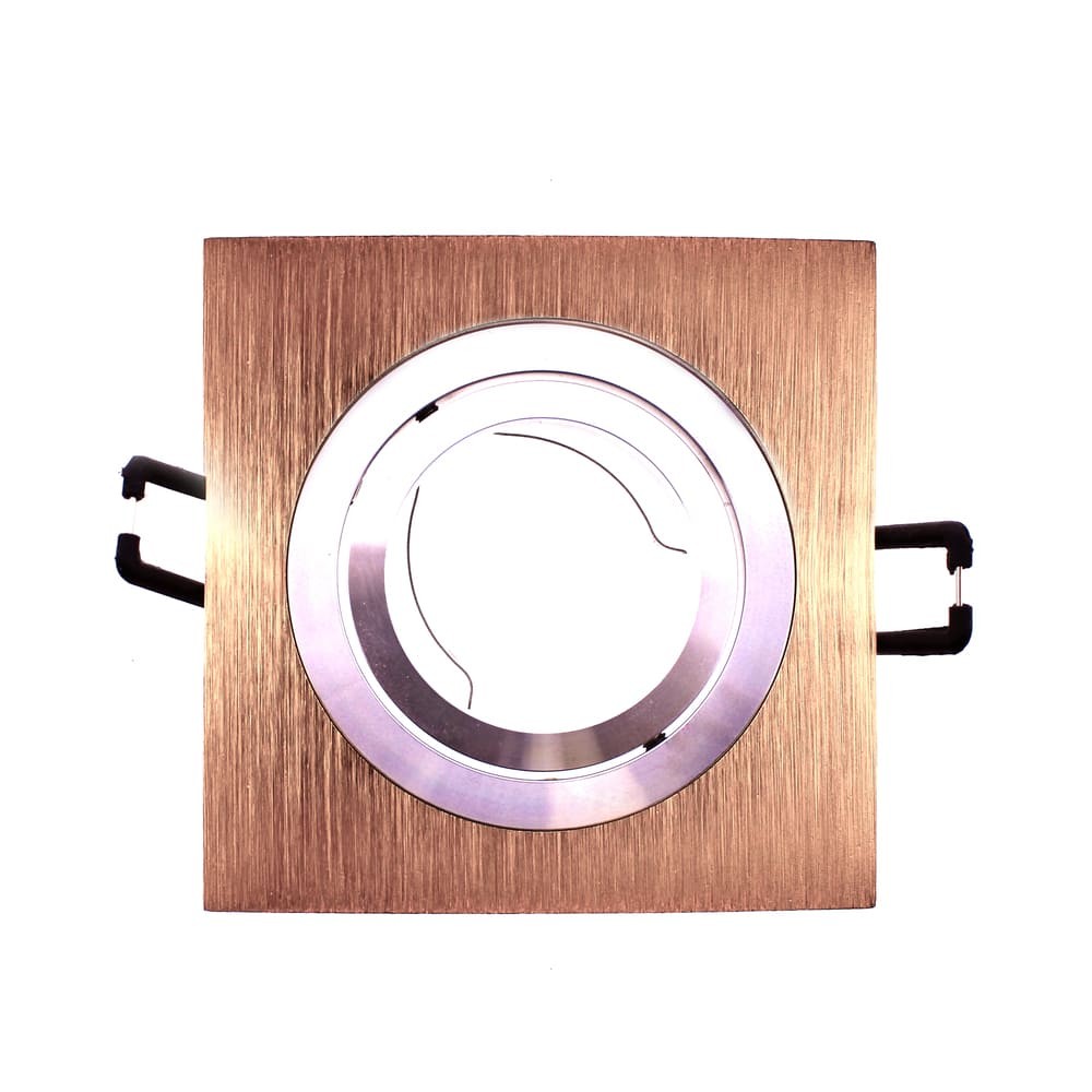 Foco empotrable para el techo cuadrado acabado cobre. Incluye portalámparas GU5.3. Ángulo de basculación de 30º. Perfecto para iluminación en pasillos, salones, dormitorios, comercios, tiendas de moda, restaurantes, etc… *Bombilla no incluida.