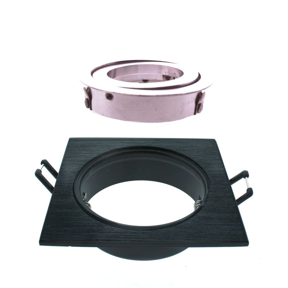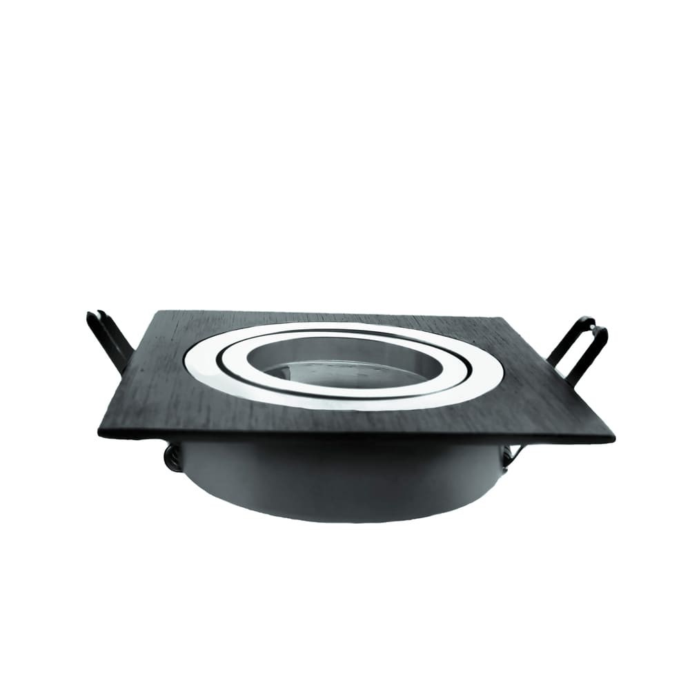 Foco empotrable para el techo cuadrado acabado negro. Incluye portalámparas GU5.3. Ángulo de basculación de 30º. Perfecto para iluminación en pasillos, salones, dormitorios, comercios, tiendas de moda, restaurantes, etc… *Bombilla no incluida.