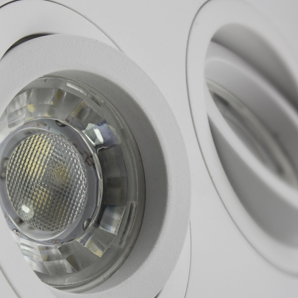 Foco rectangular para empotrar en falsos techos, con dos luces basculantes 30° y con reemplazo de la bombilla por la parte delantera. Estructura fabricada en aluminio pulido, lacado en blanco mate. Incluye portalámparas GU10, bombillas no incluidas. Perfecto para iluminación en pasillos, salones, dormitorios, comercios, tiendas de moda, restaurantes, etc…