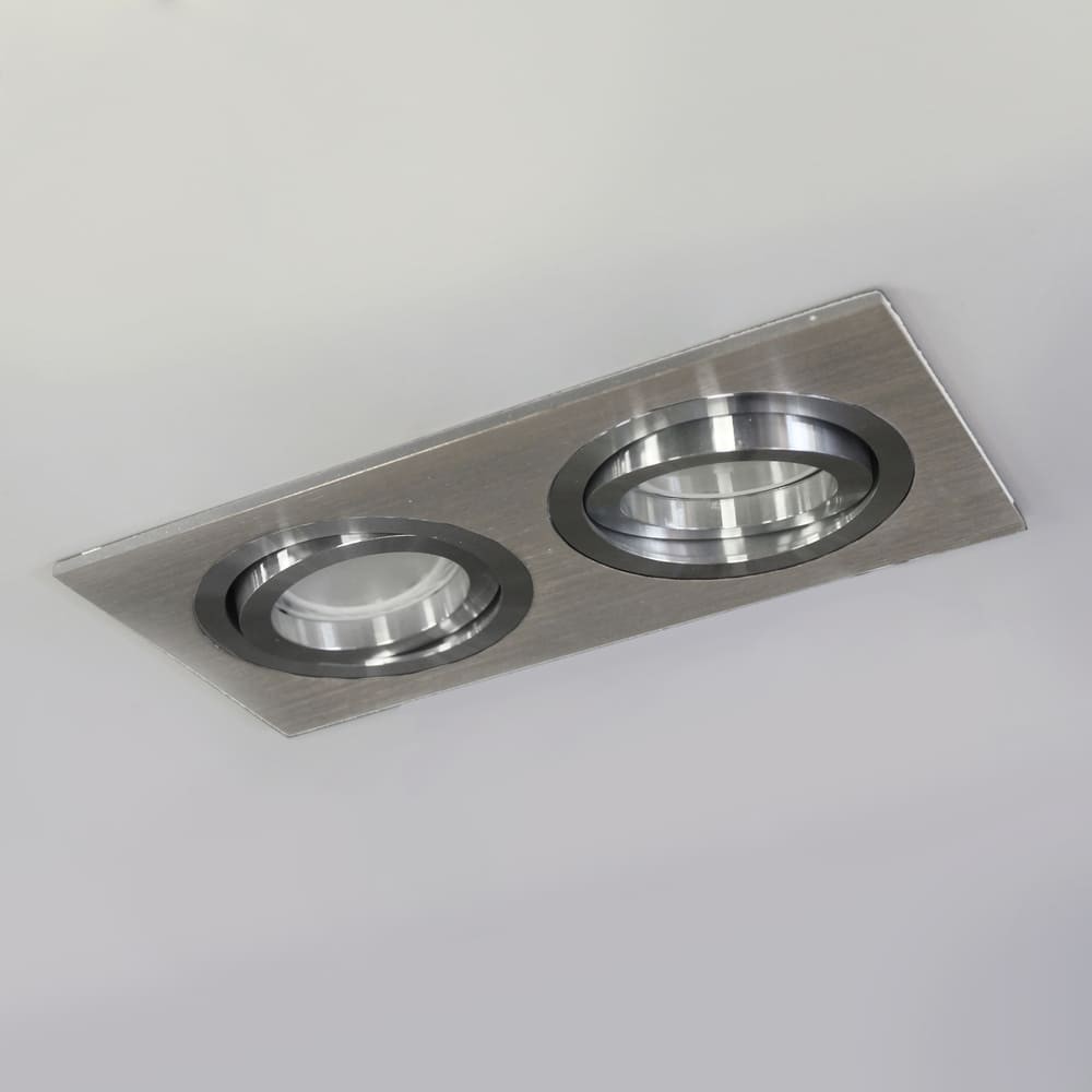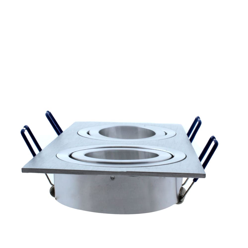 Foco empotrable para el techo cuadrado acabado en aluminio. Incluye portalámparas GU5.3. Ángulo de basculación de 30º. Perfecto para iluminación en pasillos, salones, dormitorios, comercios, tiendas de moda, restaurantes, etc… *Bombilla no incluida.