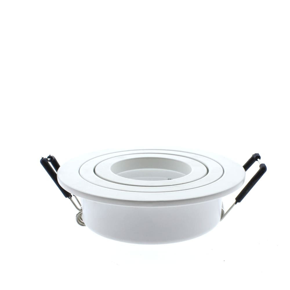 Foco empotrable en el techo redondo con acabado blanco, con accesorio GU10. La bombilla se puede inclinar con un ángulo de rotación de 30° para adaptarse a la habitación a su gusto individual. Con una apariencia muy discreta, esta lámpara de techo sería perfecta para iluminar pasillos, salas de estar, dormitorios o espacios comerciales. *Bombilla no incluida.