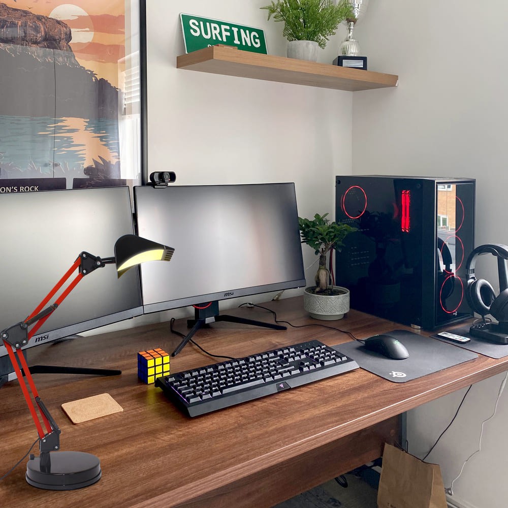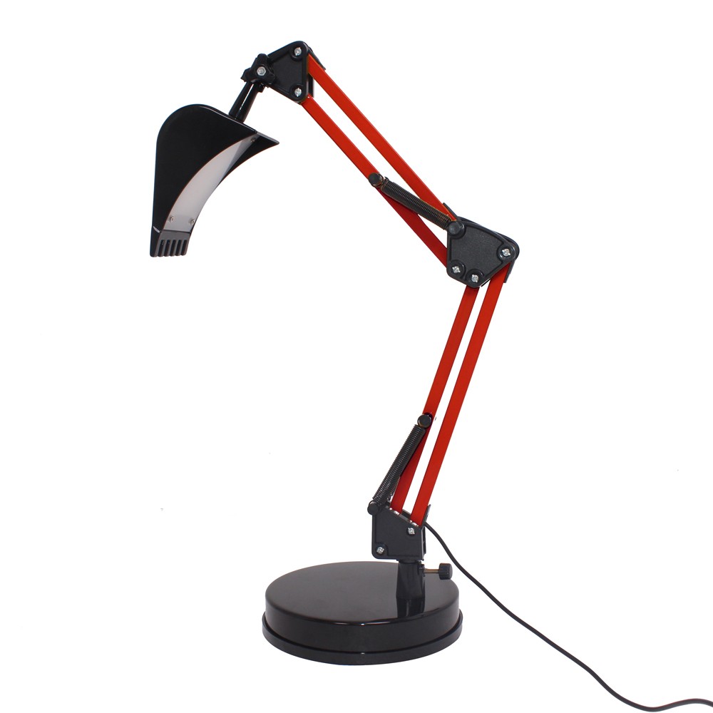 Flexo articulado de estilo juvenil Pala. Flexo con iluminación LED integrada en tono cálido para utilizar como luz de estudio o de lectura en habitaciones juveniles. Tanto la estructura del flexo como la posición del difusor se puede modificar para adaptarlo a tus necesidades. Fabricado en aluminio de color rojo con partes en negro. Luz cálida.
