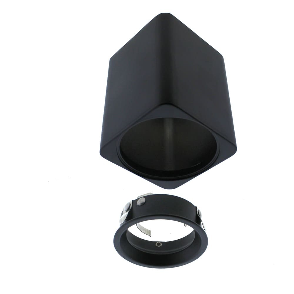 Foco fijo cuadrado para techos para bombilla GU10 (no incluida) fabricado en aluminio con acabado lacado texturizado. Sencilla instalación de superficie, con reemplazo de la bombilla por la parte delantera del foco.
