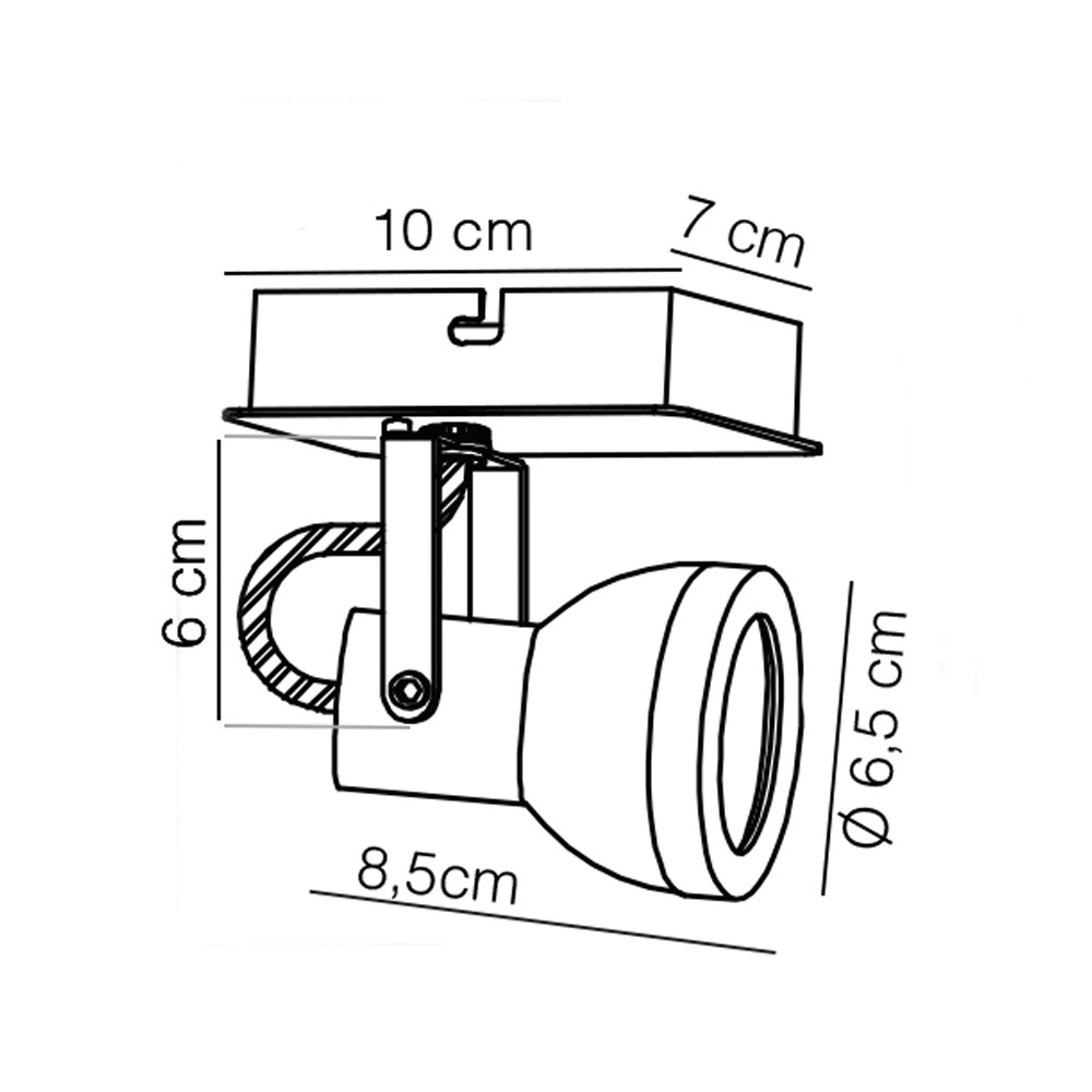 Foco basculante fabricado en hierro con acabado cuero. Apto para bombillas LED GU10, no incluidas. Puede instalarse en el teho o en la pared, permitiendo dirigir el haz de luz a un punto concreto gracias a su ángulo de basculación y rotación.