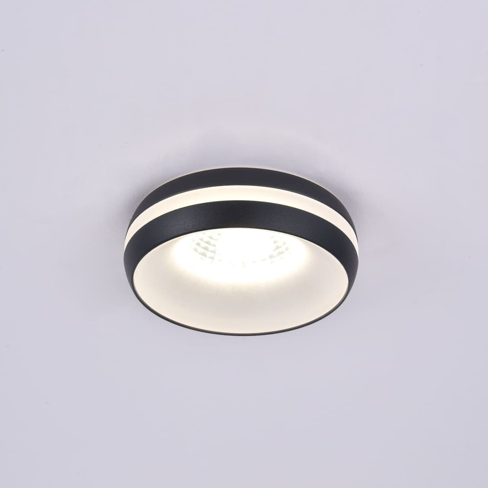 Foco empotrable decorativo con iluminación led integrada de 6W con luz neutra en 4000°K con alto confort óptico. Una vez instalado, el foco tiene una superficie de 5.5 cm con una fina tira traslucida que deja salir la luz por los laterales. Tiene un diámetro de corte de 6,5 cm y un diámetro exterior de 8,5 cm. cuenta con IP44 lo que permite instalarlo en baños y exteriores.