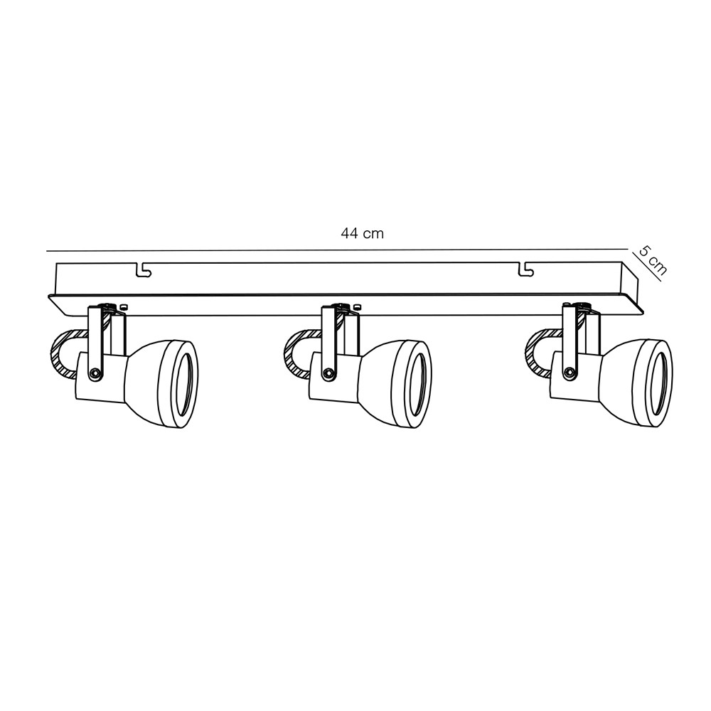 Regleta de techo con tres focos basculantes orientables para bombillas GU10. Fabricado en hierro aporta una calidad inmejorable al plafón, con un acabado en cuero muy elegante. Ideal para salones y comedores. Además el reemplazo de las bombillas (no incluidas en el producto) es muy sencillo, unicamente se debe desenroscar el aro del foco y una vez cambiada la bombilla volver a ponerlo.