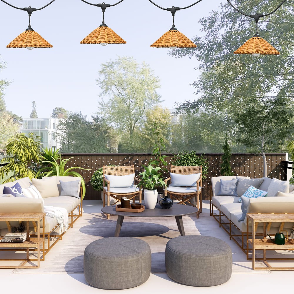 Guirnalda de 10 luces para iluminación exterior. Esta guirnalda cuenta con batería recargable a través de USB o con la luz del sol gracias a su panel solar. 10 puntos de luz con bombillas LED para controlar fácilmente con el mando a distancia que incluye. Puedes seleccionar tres intensidades de luz, cuatro ajustes de temporizador y diferentes modos. Guirnalda de 10 luces para instalar en el techo de porches, jardines y terrazas. Cable de 9 metros con una separación de 1 metro entre cada pantalla.