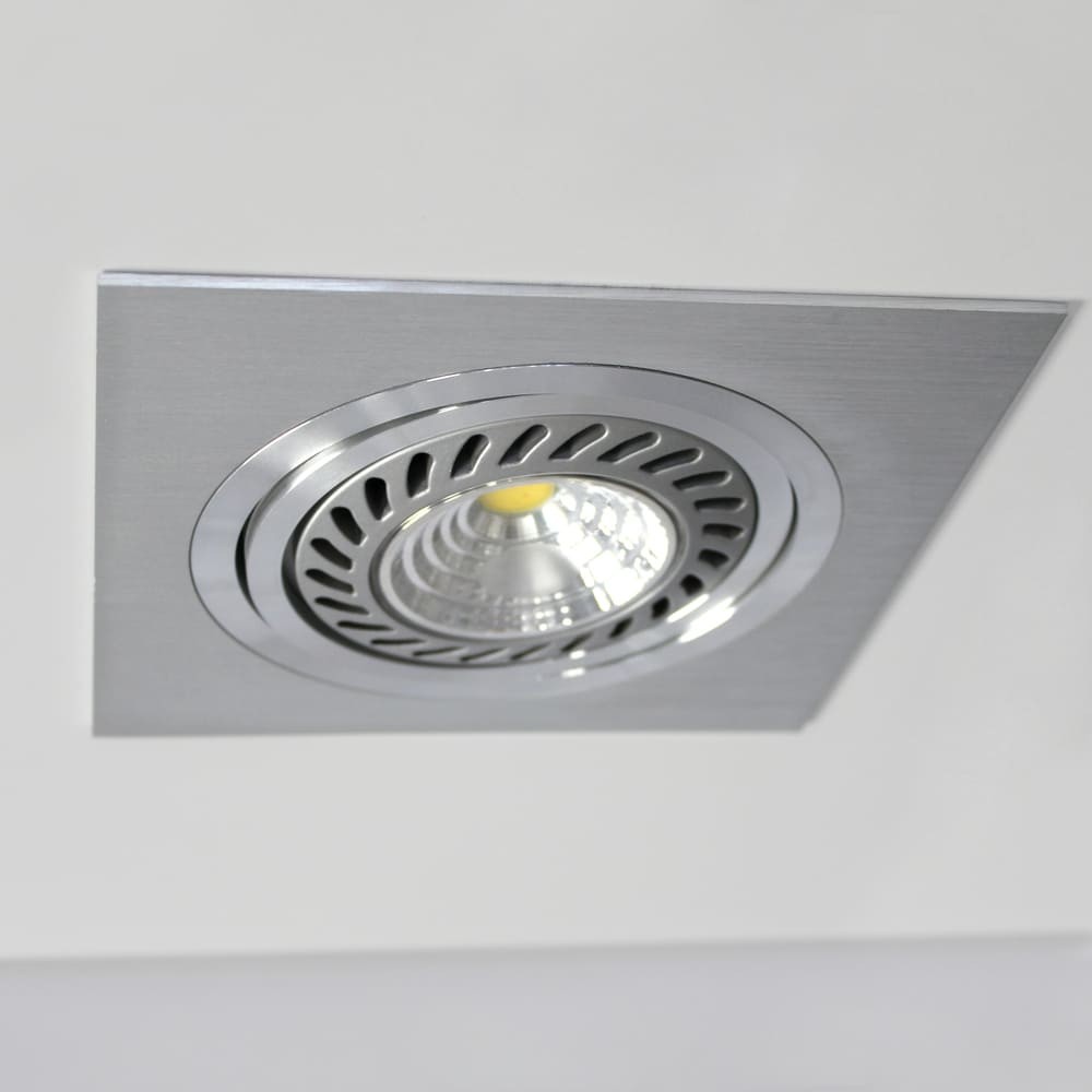 Empotrable para el techo gran tamaño realizado en aluminio. Portalámparas GU53 incluido. Ángulo basculación: 30º pudiendo orientar la luz al punto deseado. Perfecto para iluminación en pasillos, salones, dormitorios, comercios… *Bombilla no incluida.