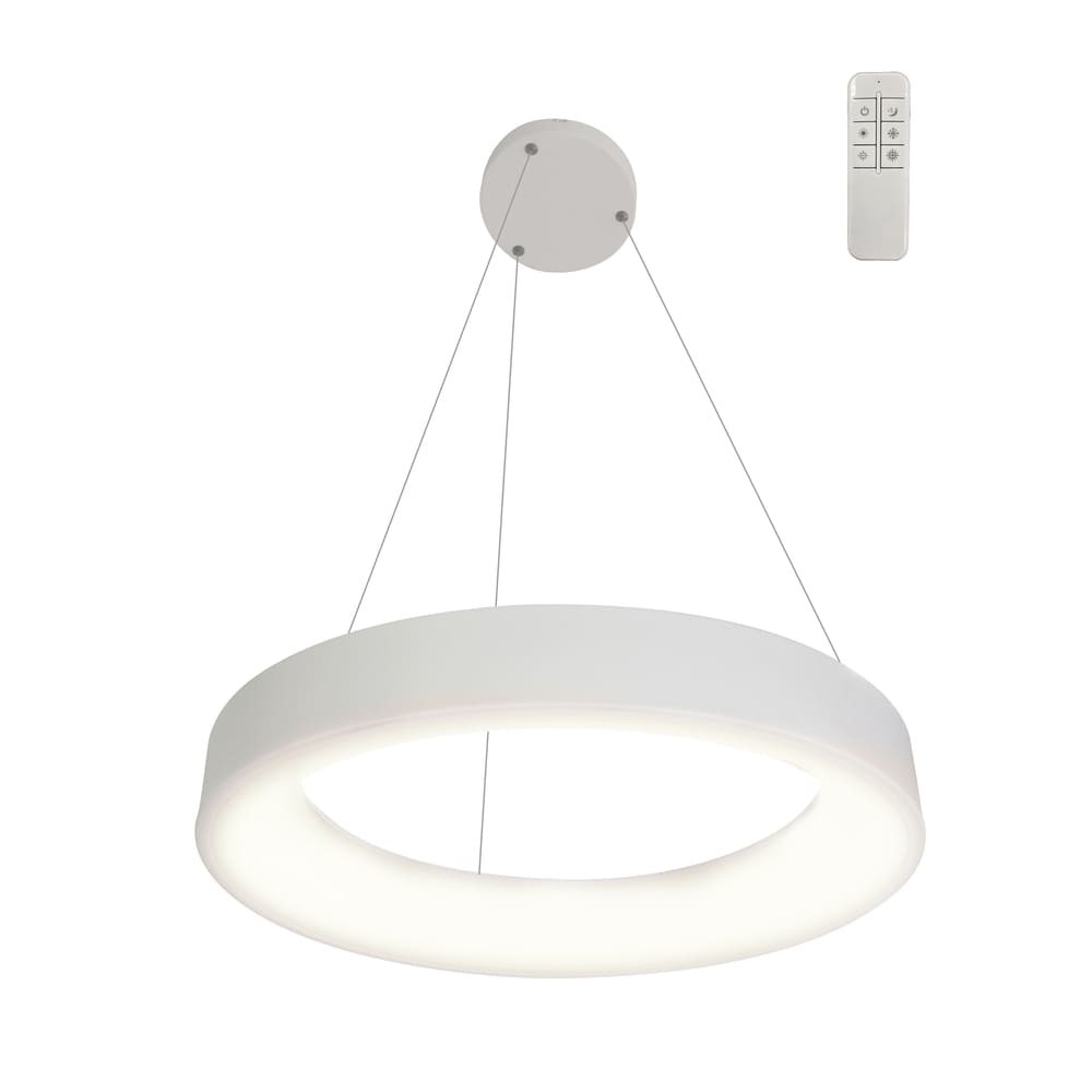Lámpara de techo con tres temperaturas de color. La lámpara colgante LED Lyn es perfecta para instalar sobre una mesa o una zona de sofás gracias a su diseño en forma de aro. Incluye un mando a distancia para adaptar el tono de color de la luz a tus necesidades en cada momento. Lámpara colgante de color blanco ideal para salones de estilo moderno.