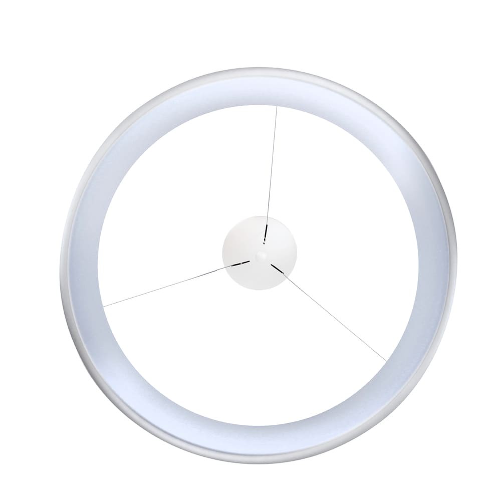 Lámpara de techo colgante con luz led en tono cálido de 3000K. La altura de la lámpara puede ajustarse fácilmente con un sencillo sistema escondido en el florón. Tanto el florón como el aro de la lámpara están fabricados en aluminio con un difusor acrílico que permite pasar la luz reduciendo el índice de deslumbramiento. Puedes encontrar la lámpara en tres acabados diferentes; blanco, café y plata.