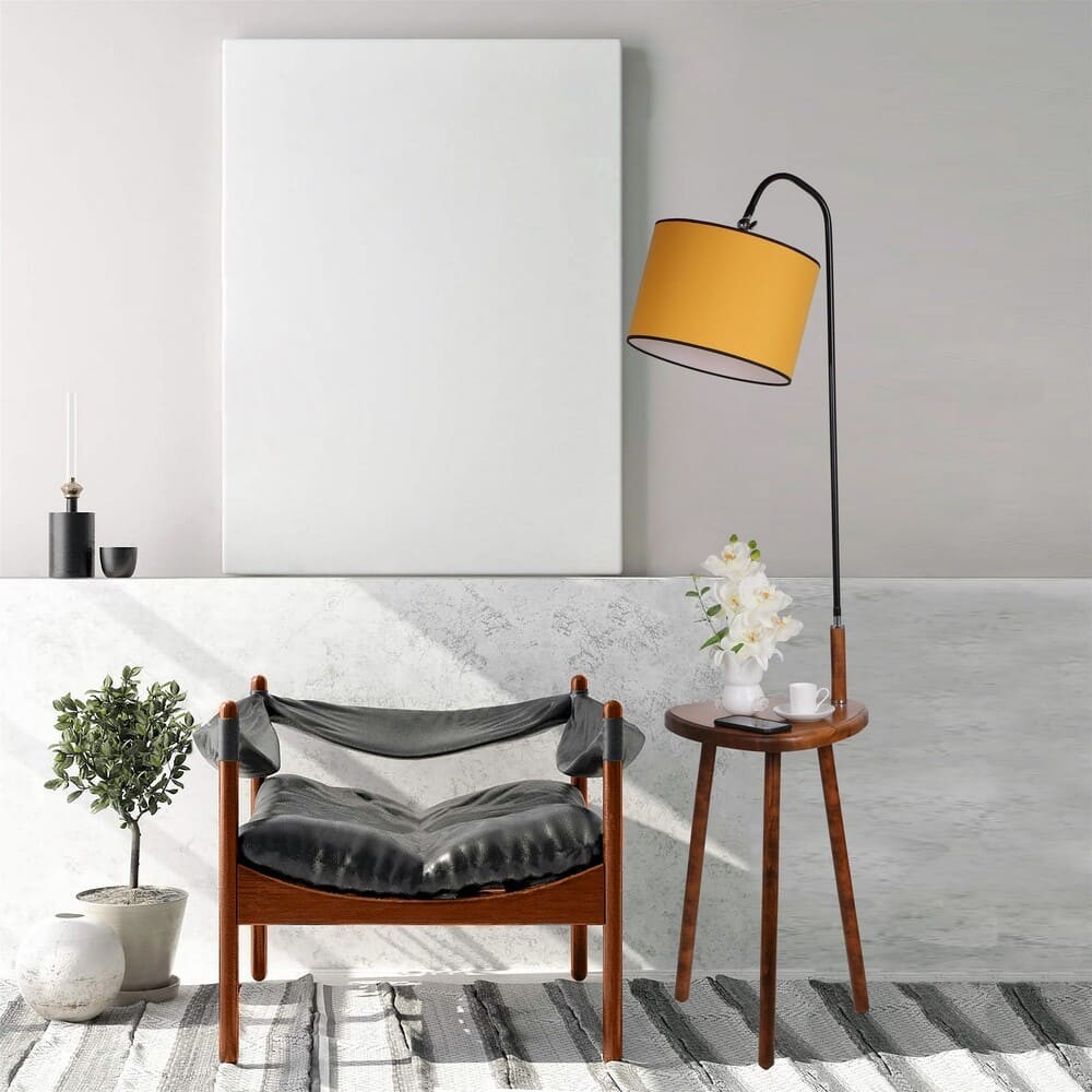 Lámpara de pie de madera con mesa Model 3 mostaza