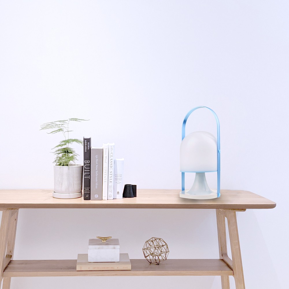 Lámpara de mesa recargable para dormitorios. Esta lámpara de mesa ofrece un práctico diseño al contar con batería recargable y asa para transportarla fácilmente. De este modo, puedes colocar la lámpara sobre cualquier mesa o mueble de tu hogar como iluminación. Cuenta con tecnología LED de 3W y luz cálida, permitiendo aportar una acogedora iluminación junto a la cama o un sofá.