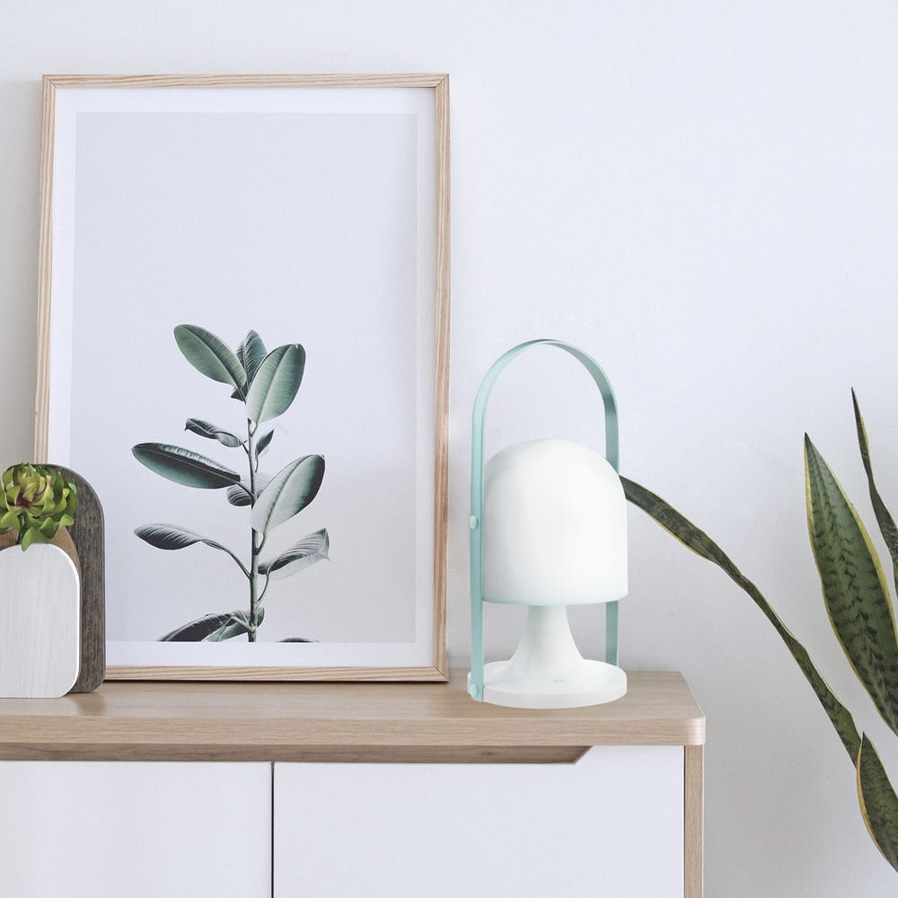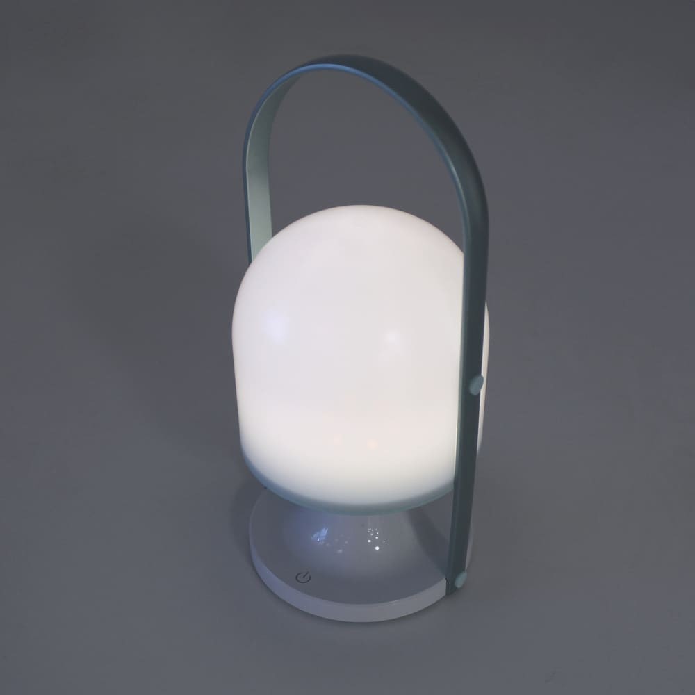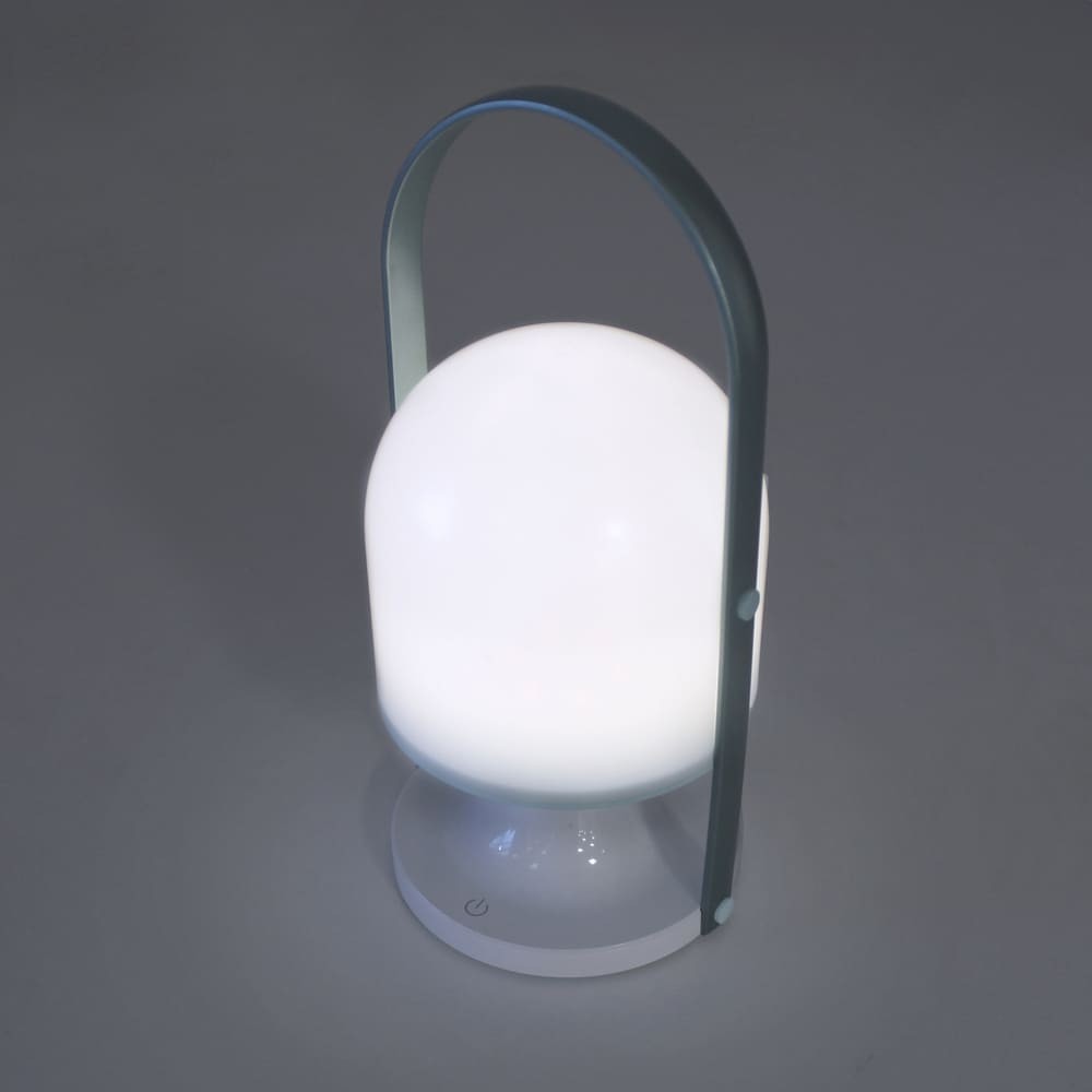 Lámpara de mesa recargable para dormitorios. Esta lámpara de mesa ofrece un práctico diseño al contar con batería recargable y asa para transportarla fácilmente. De este modo, puedes colocar la lámpara sobre cualquier mesa o mueble de tu hogar como iluminación. Cuenta con tecnología LED de 3W y luz cálida, permitiendo aportar una acogedora iluminación junto a la cama o un sofá.