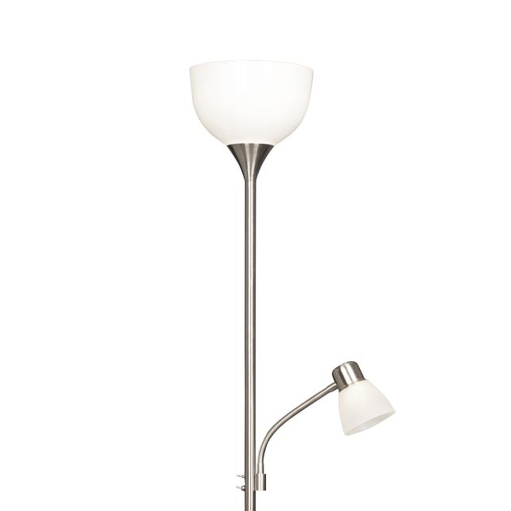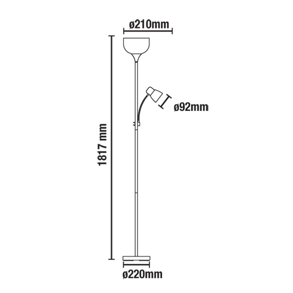 Lámpara de pie con luz LED (18W) y brazo lector con LED (5W). Luz cálida 3000ºK. Perfecta para colocar entre sofás, asegurando un mínimo gasto (Ahorro de hasta el 80% en el consumo respecto a una lámpara halógena). Diseño como las lámparas de pie de toda la vida pero con la última tecnología LED. Pantallas realizadas en ABS.