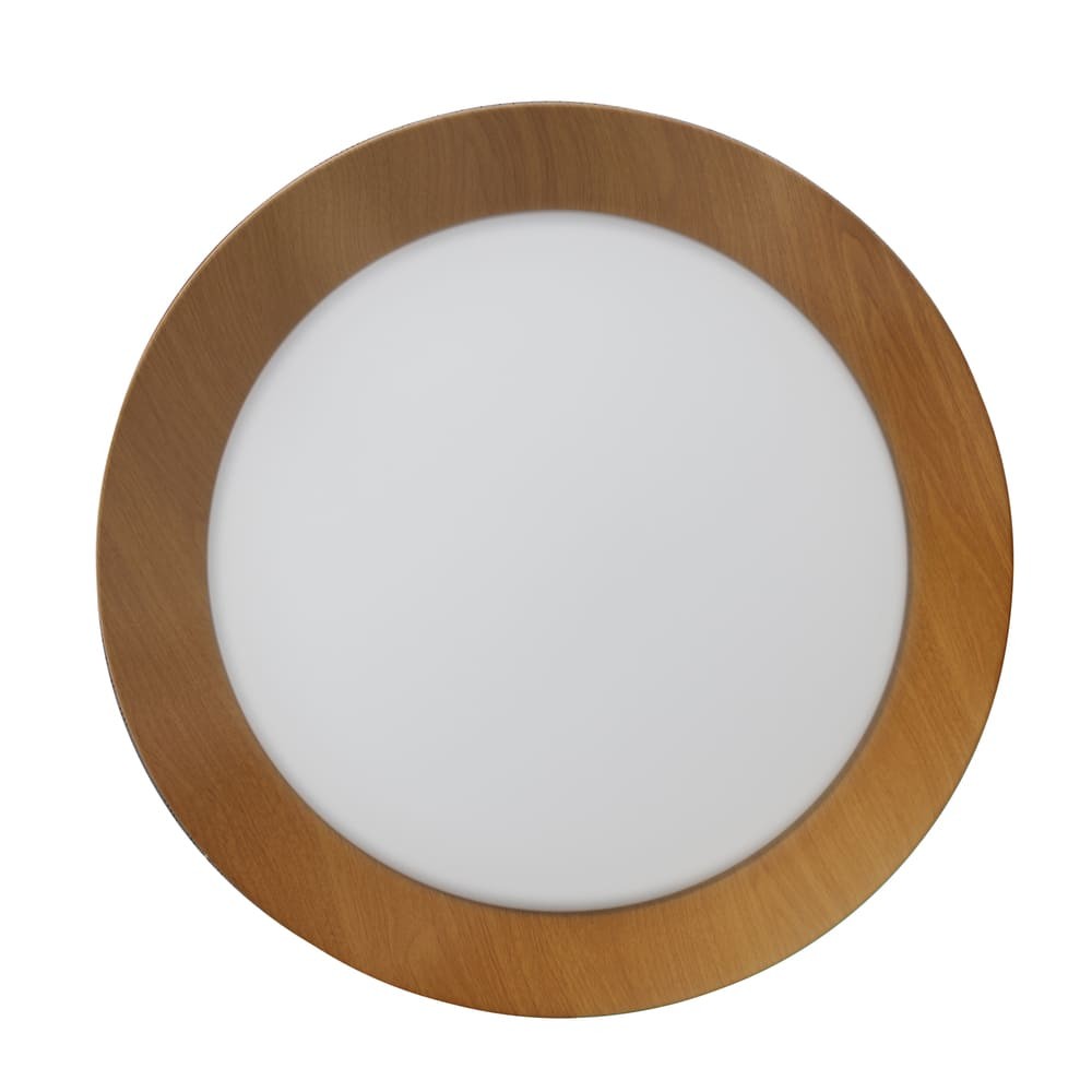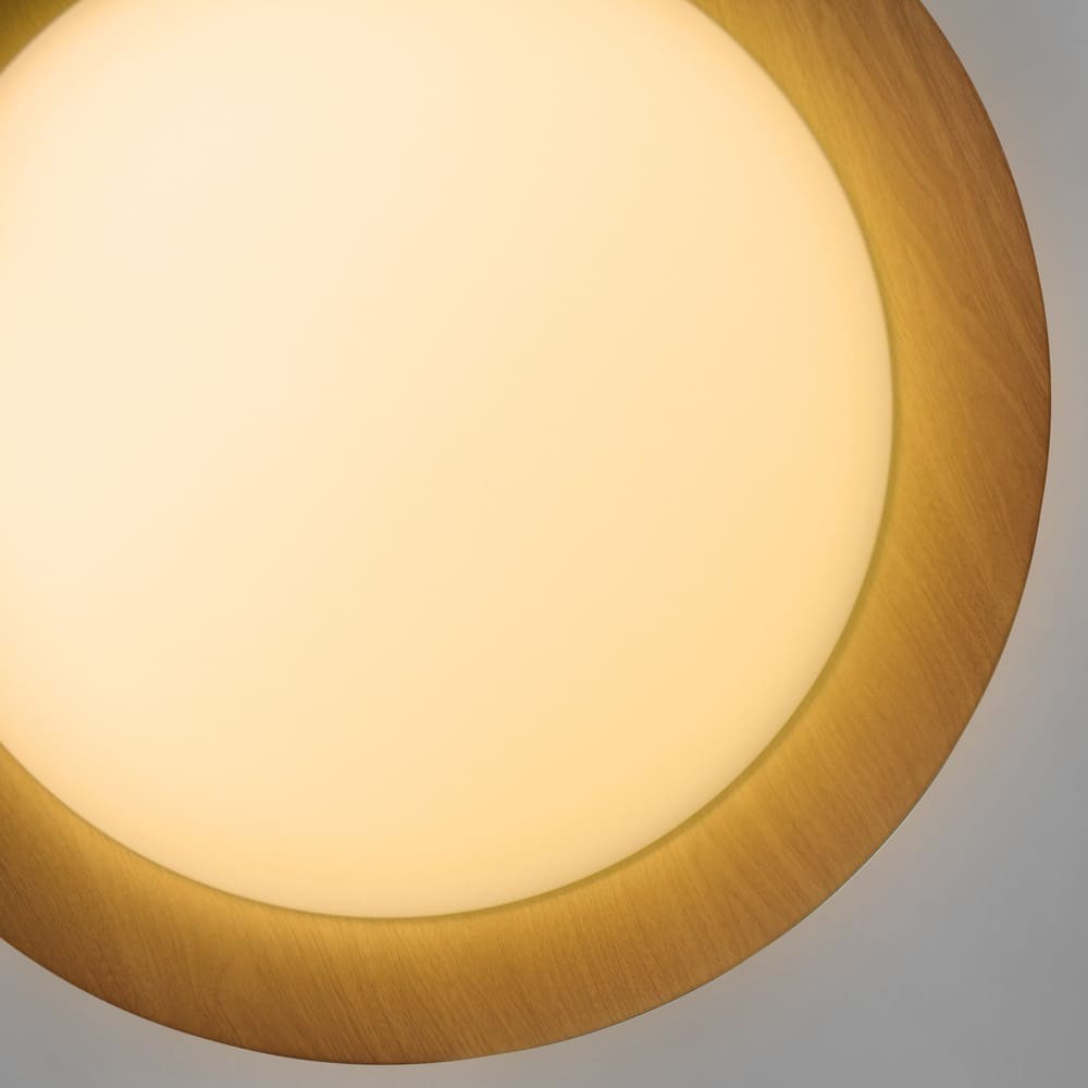 Plafón de techo LED Lili para dormitorios y salones. Plafón de forma circular fabricado en aluminio de color blanco y decoración efecto madera en la parte interior. Su difusor circular permite crear una óptima iluminación en tono cálido para la iluminación de una estancia. Plafón de techo circular de estilo nórdico combinando color blanco con imitación en madera.