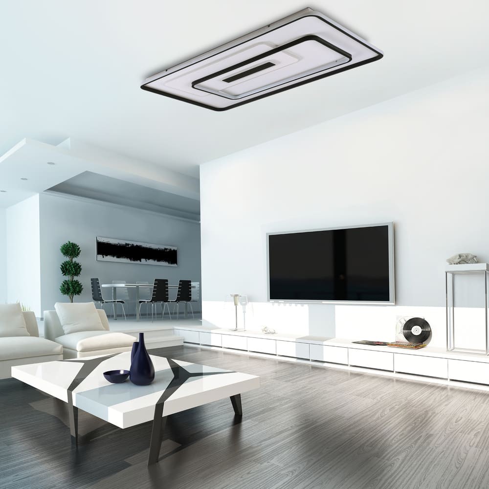Plafón LED decorativo con iluminación led integrada de tres temperaturas. La estructura del plafón permite crear diferentes ambientes de iluminación. Con el mando incluido, además de ajustar el tono de luz puede regularse la intensidad y encenderse y apagarse. Además, dispone de modo noche de iluminación y función memoria para recuperar la última iluminación configurada.