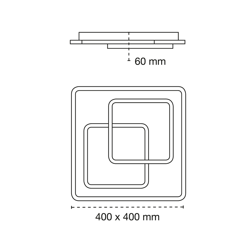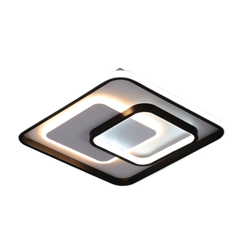 Plafón LED decorativo cuadrado con iluminación led integrada de tres temperaturas. La estructura del plafón permite crear, con sus tiras de iluminación, diferentes ambientes de iluminación. Con el mando incluido, además de ajustar el tono de luz puede regularse la intensidad y encenderse y apagarse. Además, dispone de modo noche de iluminación y función memoria para recuperar la última iluminación configurada.