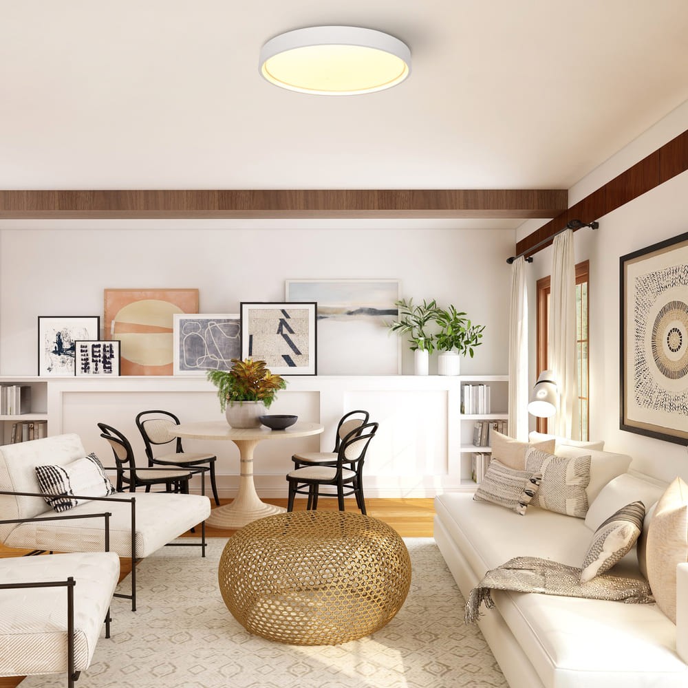 El plafón es dimmable con tres intensidades de luz intercambiables con el habitual interruptor de pared: 12,5% (3W-300lm) / 42% (12W-1000lm) / 100% (30W-2400lm).