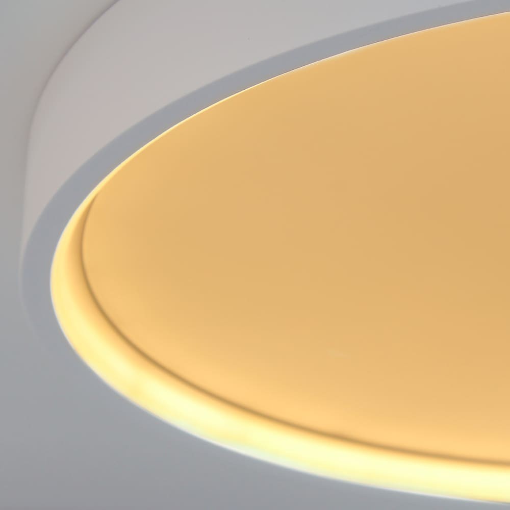 Plafón de techo LED Aster con tres intensidades. Plafón de estilo moderno diseñado para instalar como fuente de luz principal en una estancia. Forma circular con un amplio difusor de policarbonato proyectando la luz de manera uniforme. Iluminación LED en tono cálido.