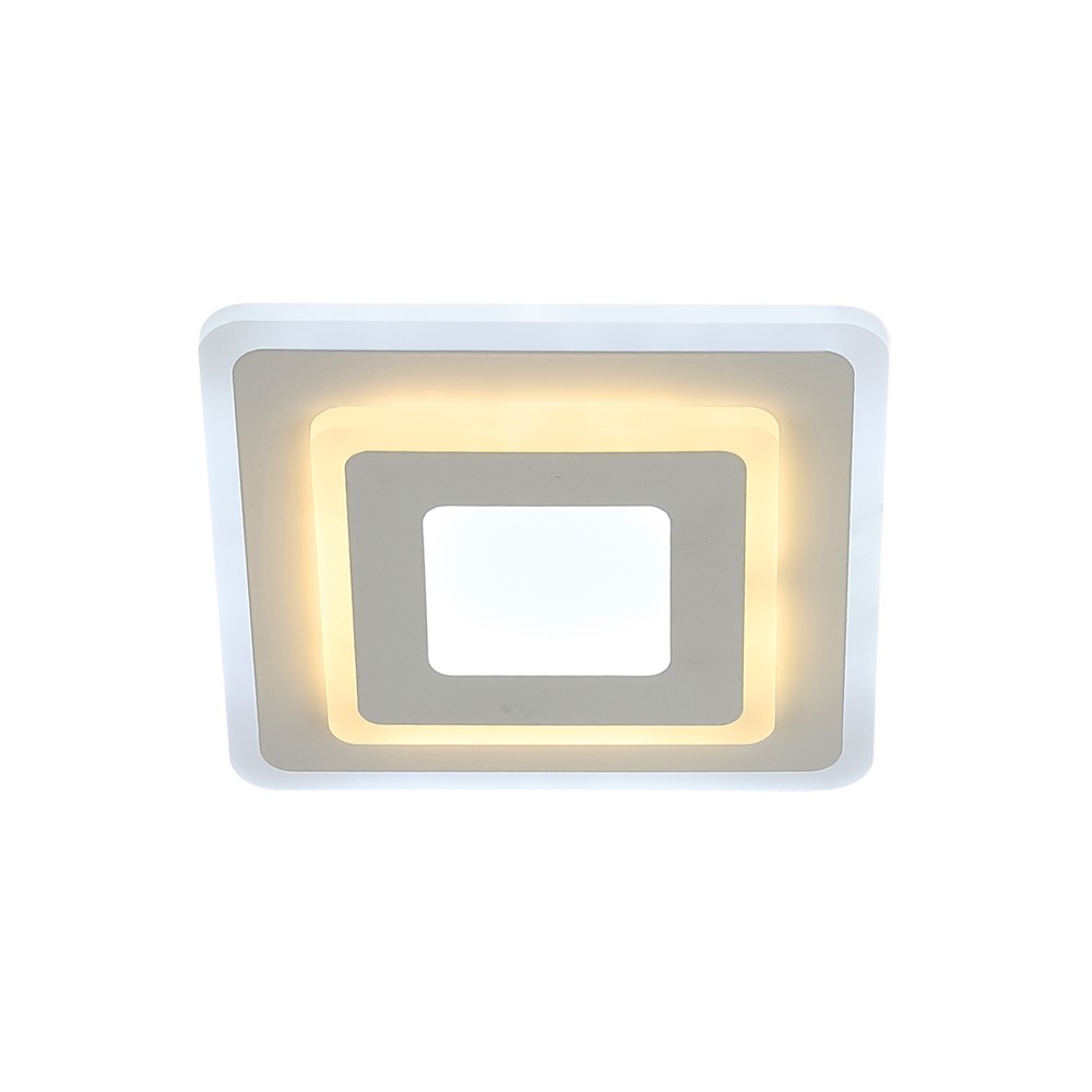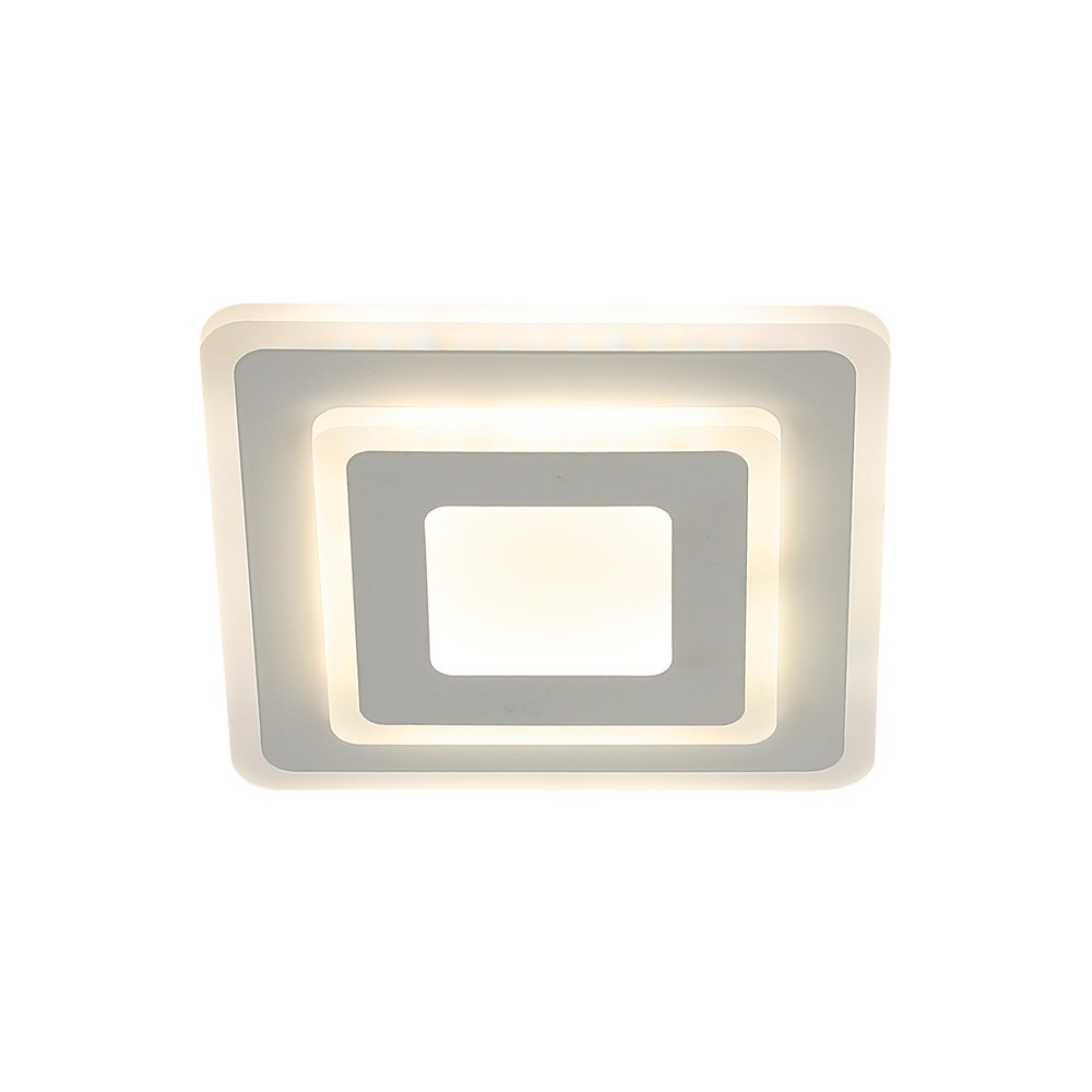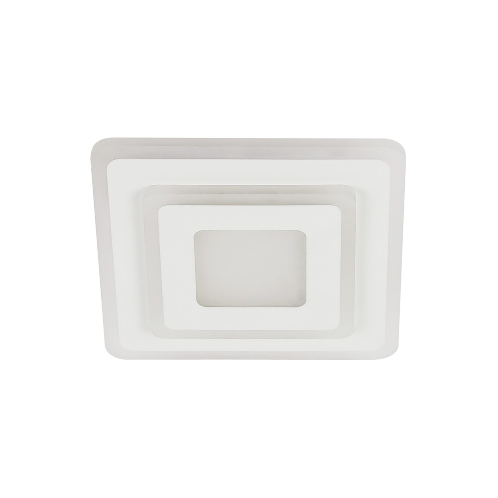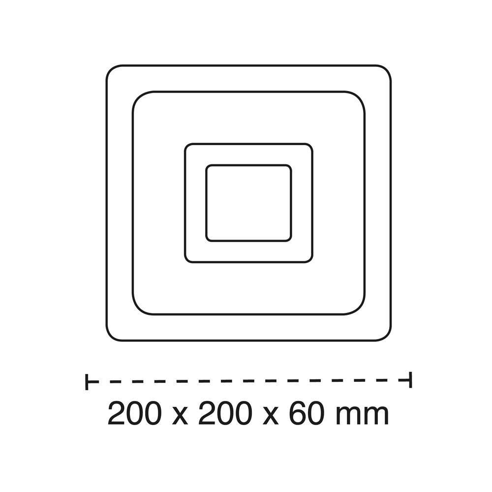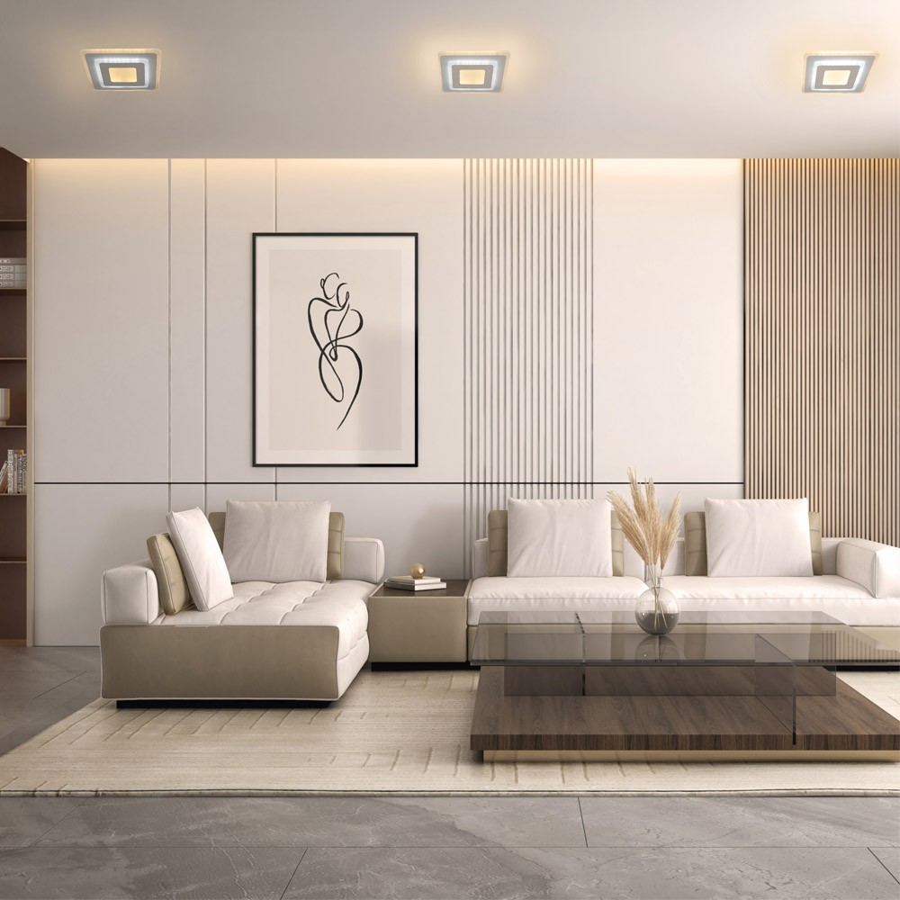 Plafón LED Cryn con tecnología Smart. Plafón cuadrado con iluminación integrada dimmable en intensidad y tres tonos de color diferentes seleccionables. Para poder controlar la luz es necesario conectar el plafón a un smartphone a través de una app (mando no incluido). Su diseño permite instalar el plafón en el techo o en una pared en forma de aplique.