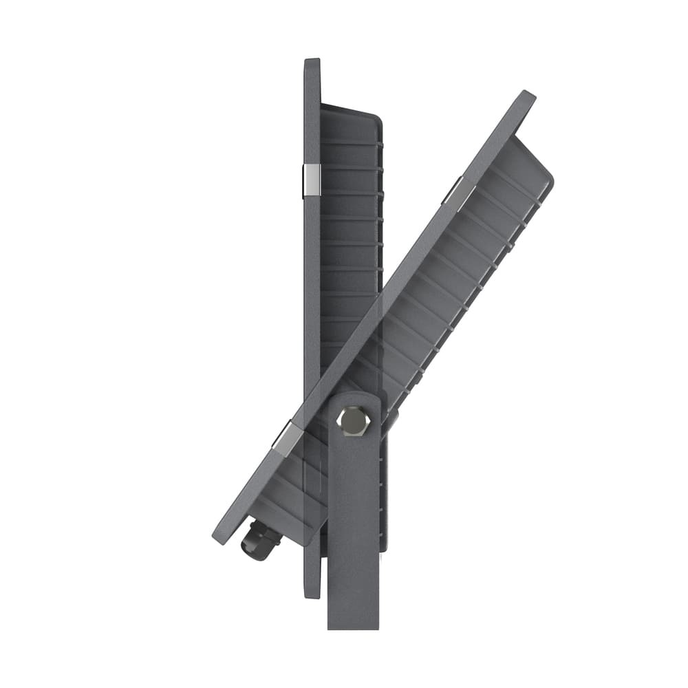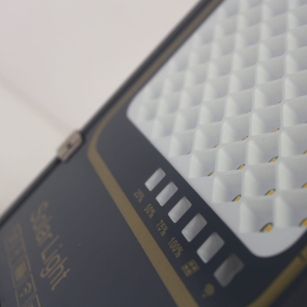 Proyector LED con panel solar con grado IP66. Proyector diseñado para aportar un gran flujo de luz en jardines, terrazas y fachadas. Cuenta con un panel solar con batería, el cual permite cargar el proyector utilizando la luz del sol. Puedes controlar la intensidad de luz del proyector con el mando a distancia, además de fijar el tiempo de apagado (3-5-8h). Ideal para iluminar zonas de paso de terrazas y jardines gracias a su sensor crepuscular y de movimiento. Luz blanca fría de 100W.